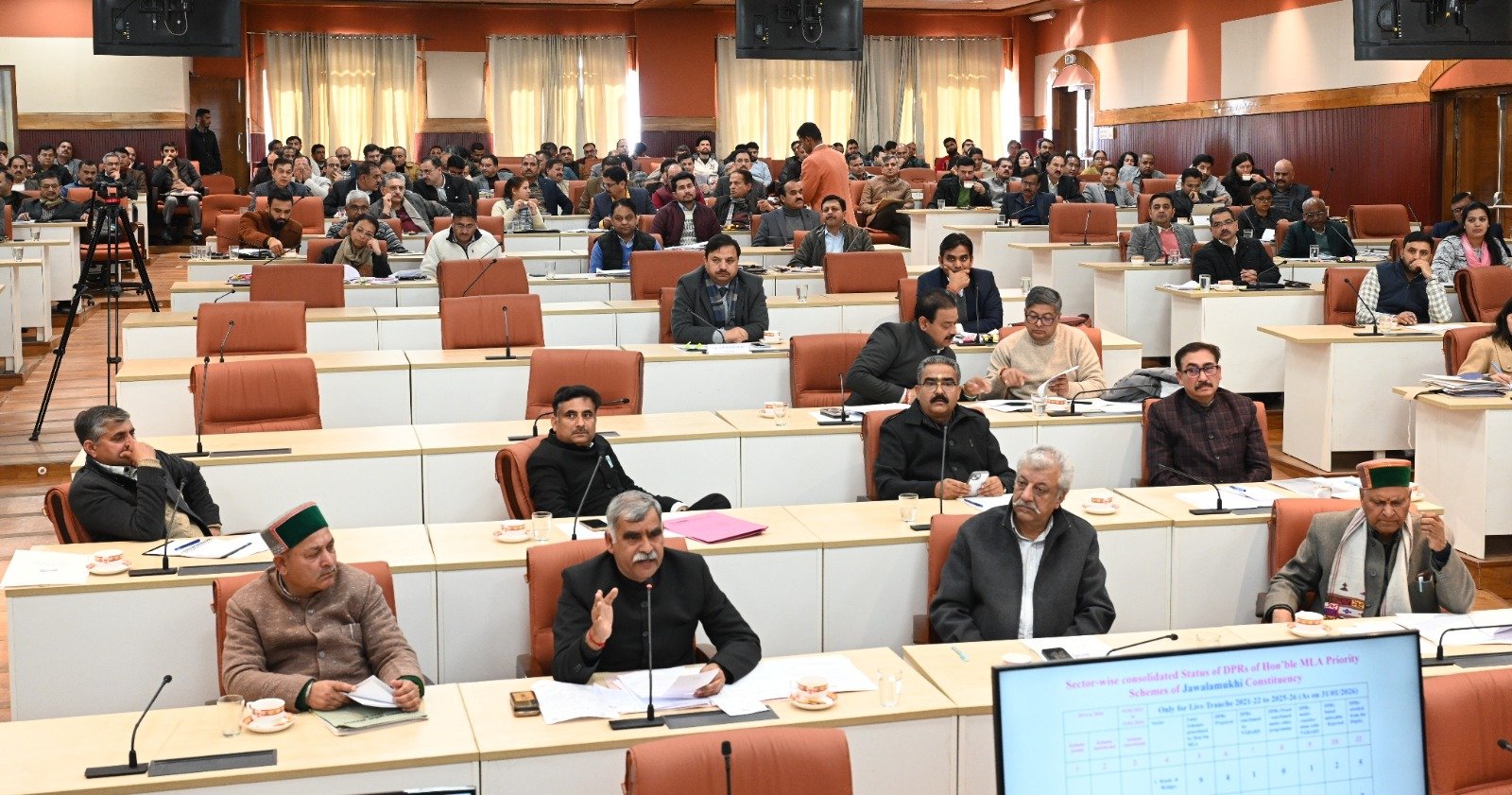 Shimla : A presentation on State’s financial position and effects of abolition of Revenue Deficit Grant (RDG) was given by the Finance Department before the Chief Minister Thakur Sukhvinder Singh Sukhu, Deputy CM Mukesh Agnihotri, Speaker H.P. Vidhan Sabha Kuldeep Pathania, Cabinet Ministers, MLAs, Administrative Secretaries, Heads of Departments, the State Media besides others. After the presentation, Chief Minister Thakur Sukhvinder Singh Sukhu said that the report of 16th Finance Commission would have a long term impact on the economy of the state including the upcoming budget. “Abolition of RDG is not the issue of a government, but it is a matter of the rights