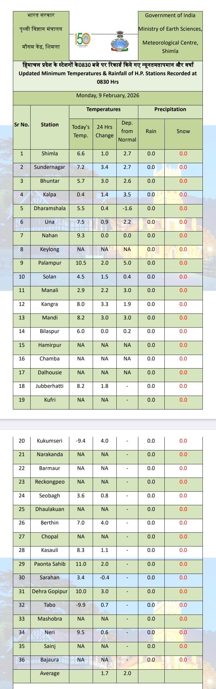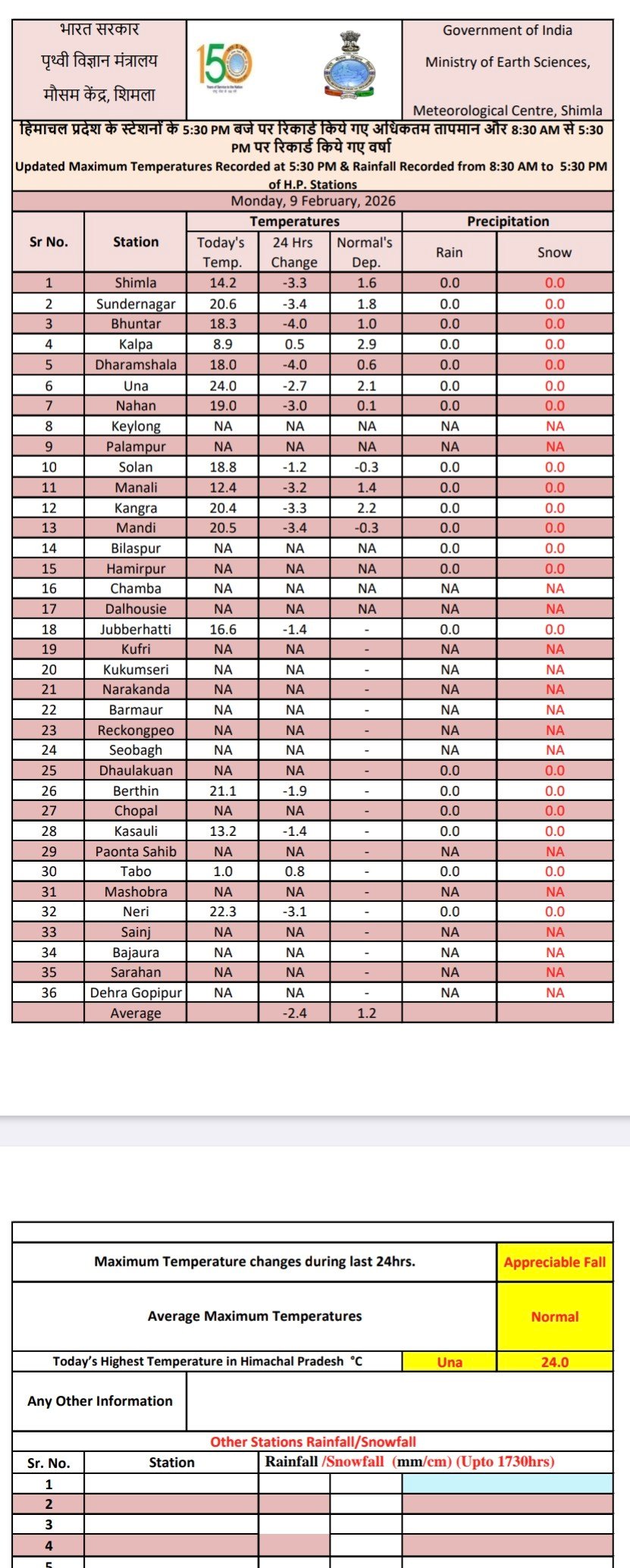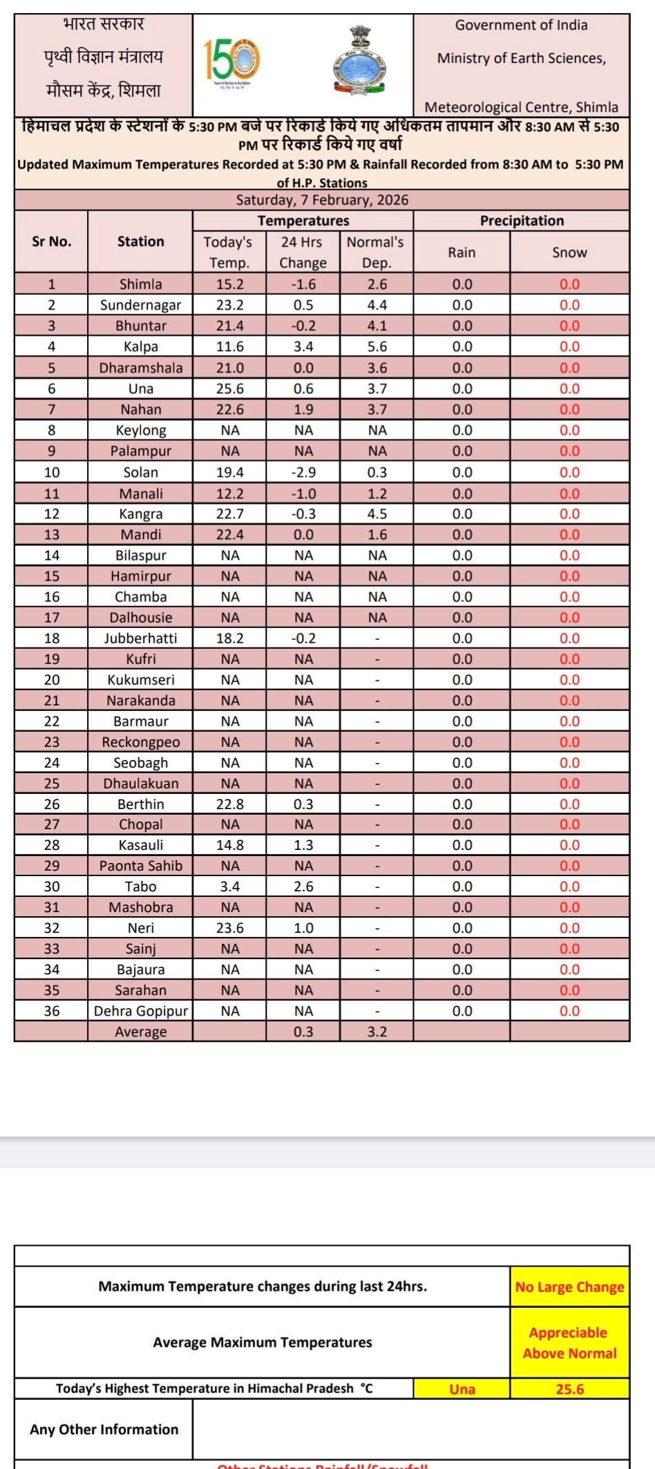 Maximum temperature in Himachal above normal by 3.2 DC