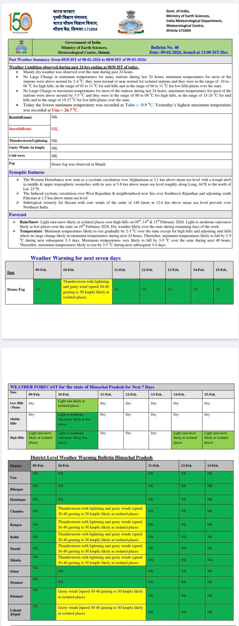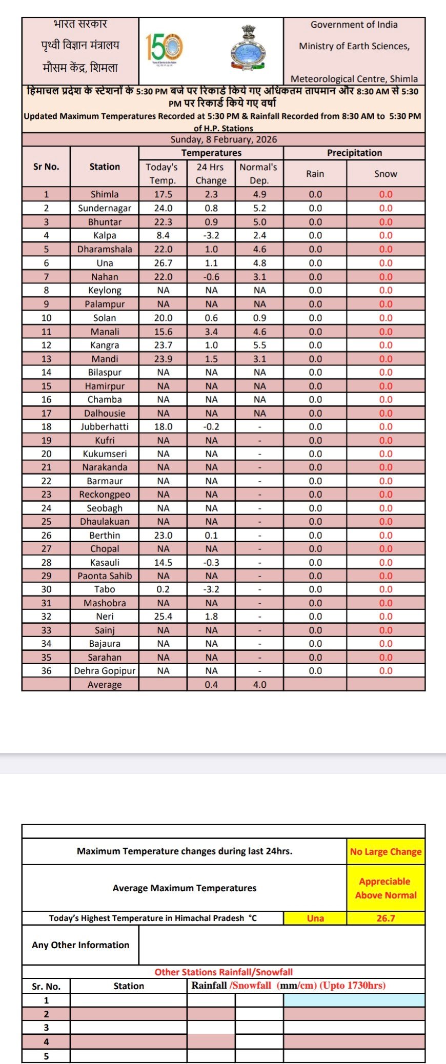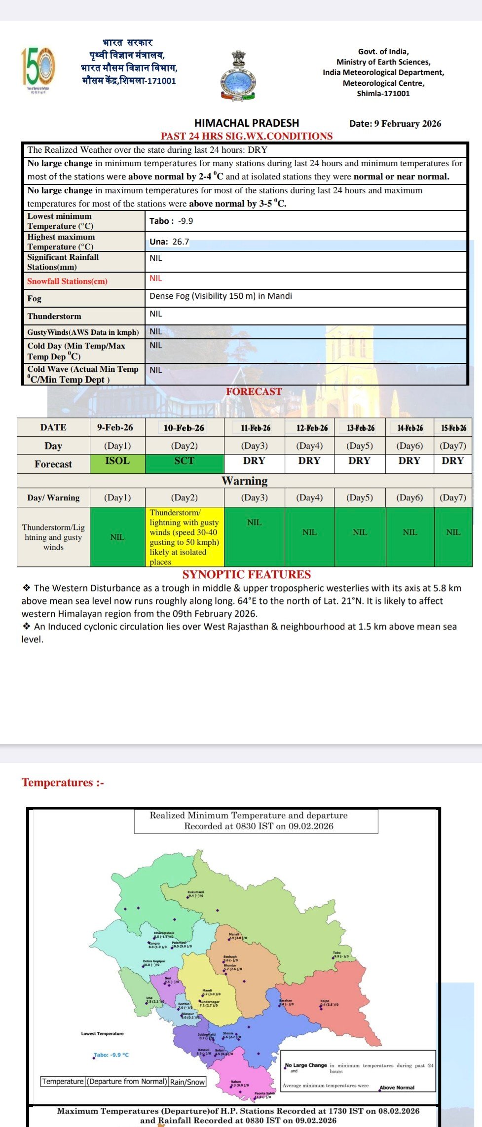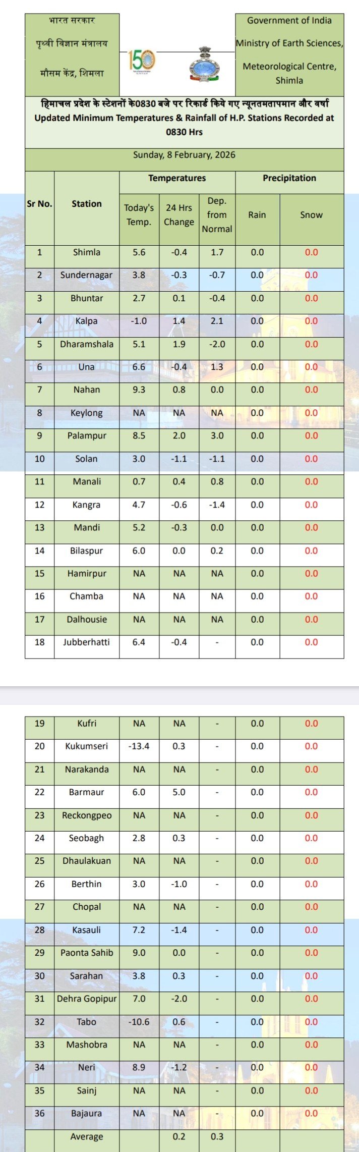 Maximum temperature in Himachal above normal by 3.2 DC