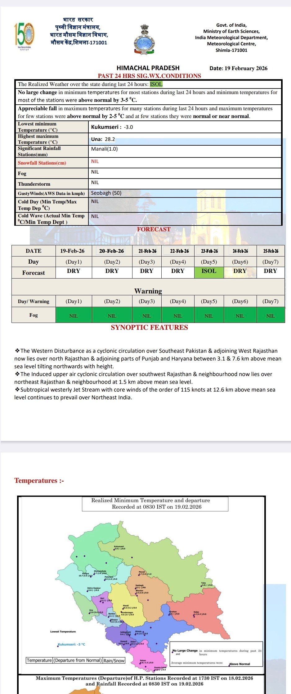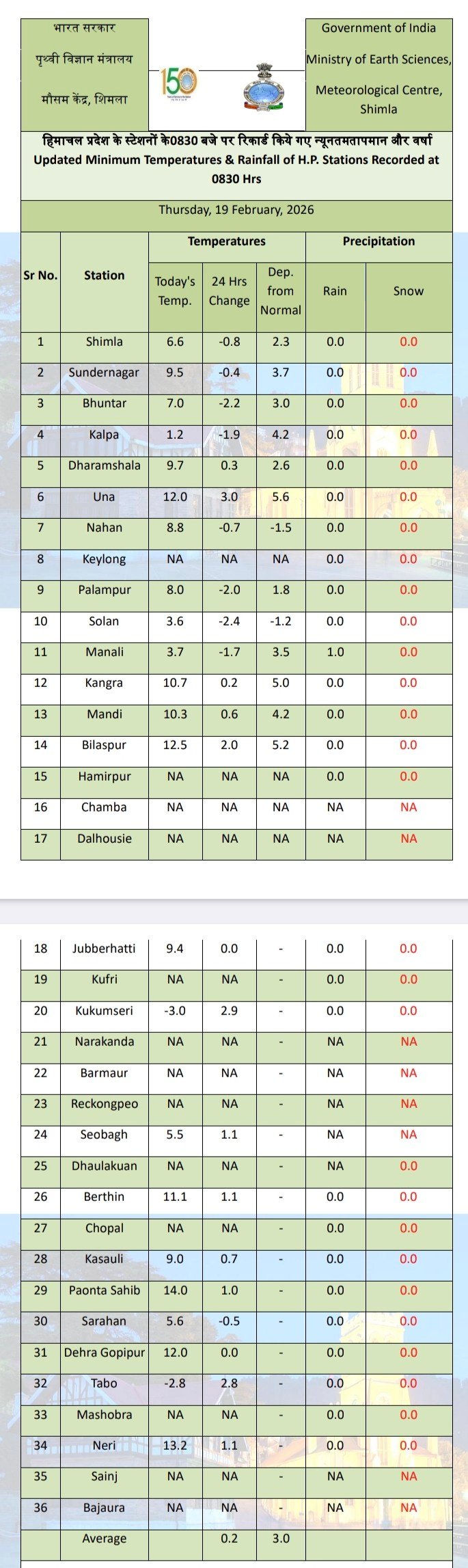 Minimum temperature decreased in Manali and Shimla