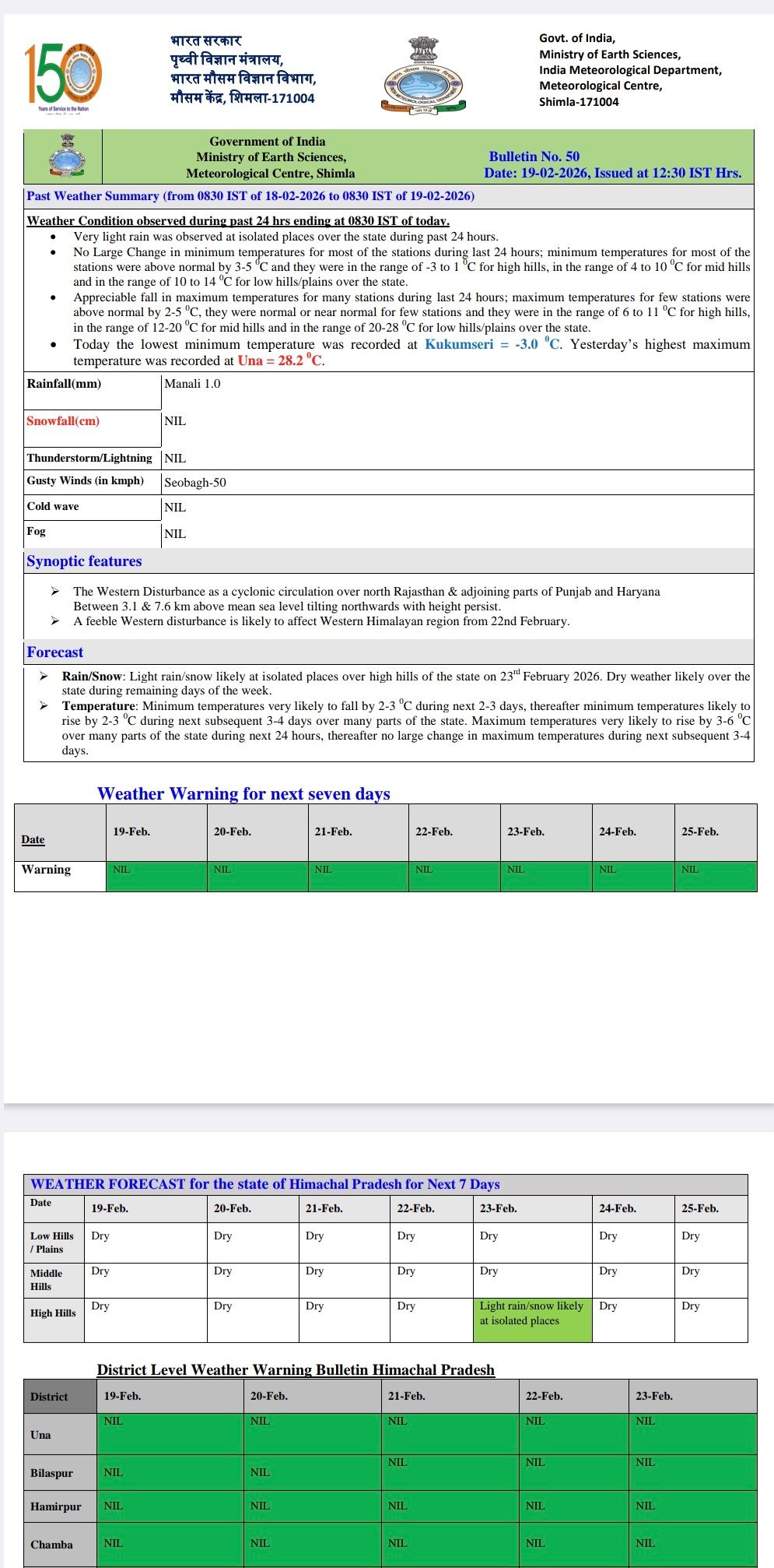 Maximum temperature at Una 28.7