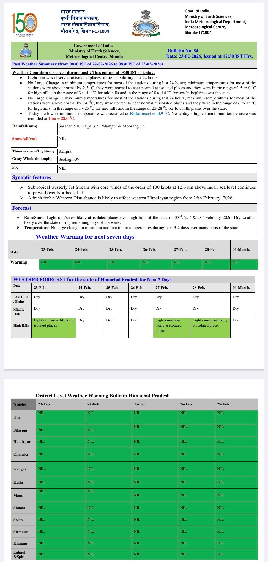 Shimla : To strengthen maternal and child health and combat malnutrition, the State Government has decided to launch the Indira Gandhi Matri Shishu Sankalp Yojna