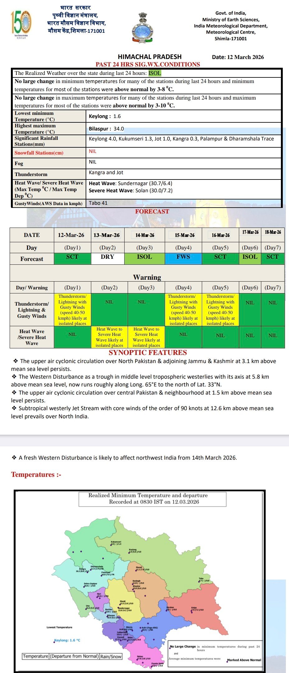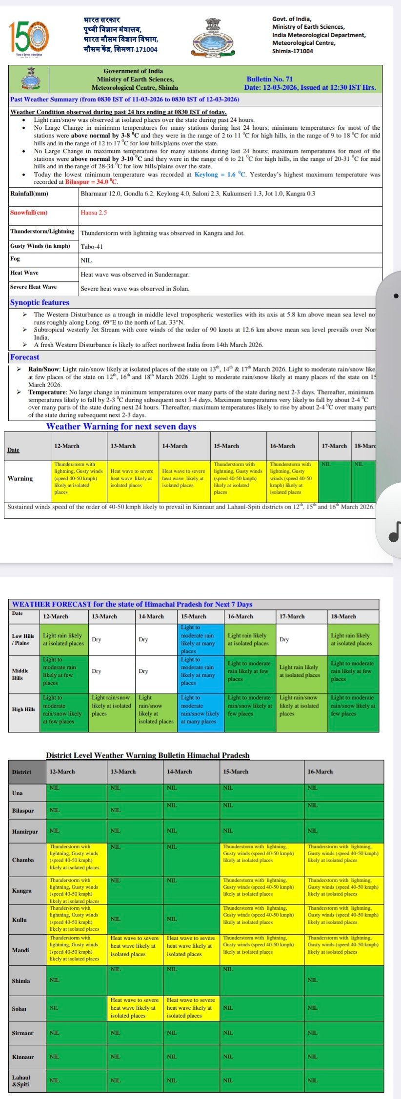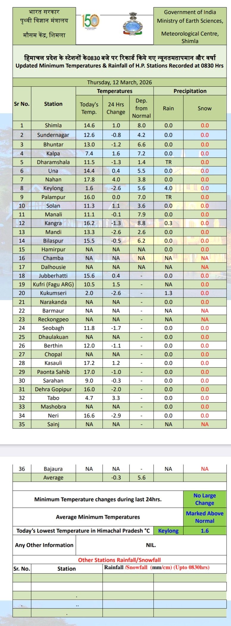 हिमाचल प्रदेश के इन जिलों में वर्षा और हिमपात की संभावना