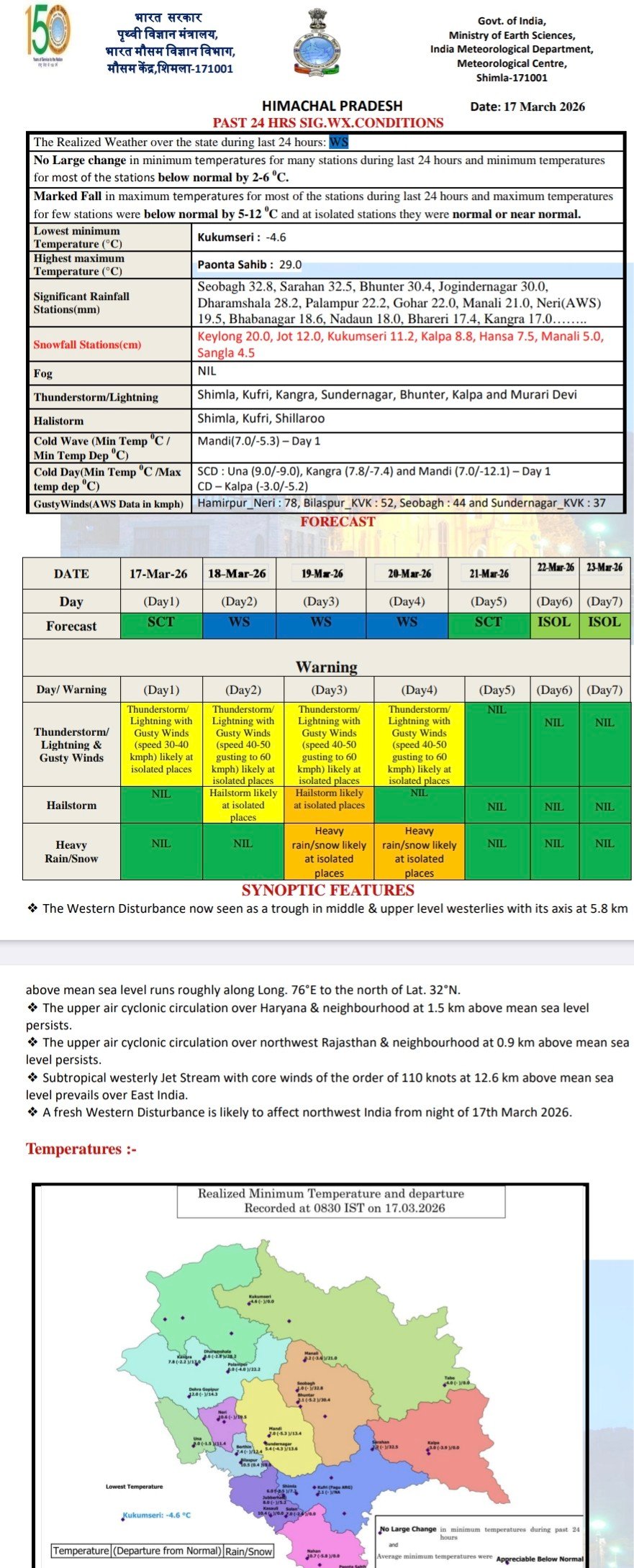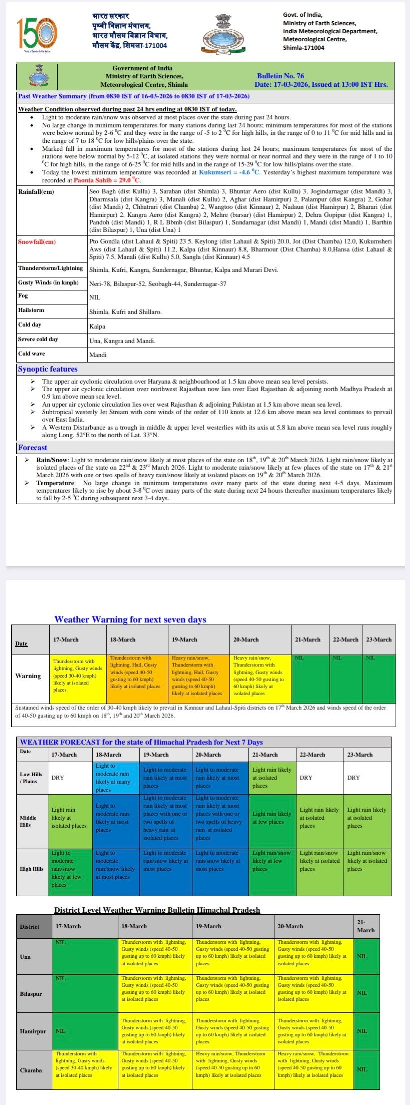 Rain, snowfall, hailstorm and winds affect report