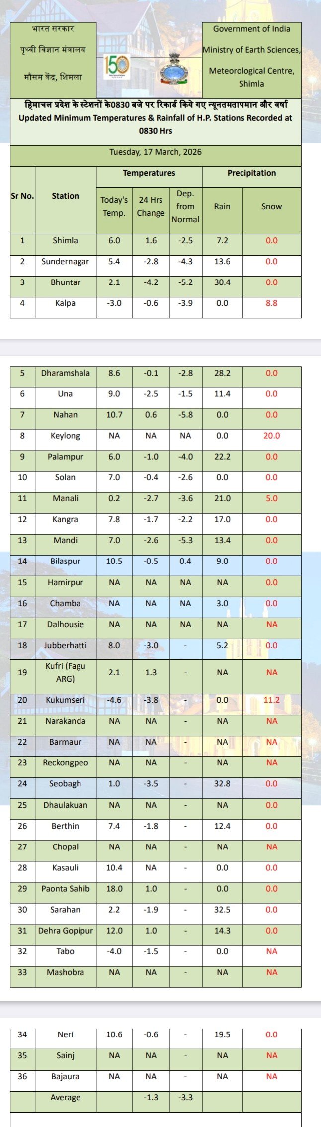 Minimum temperature below normal by 3.3 degree