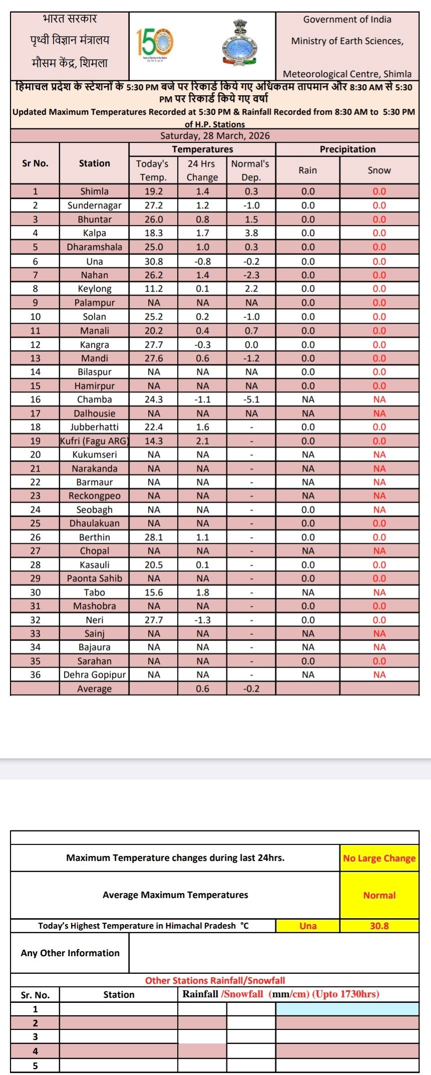 Maximum temperature 30.8 at Una