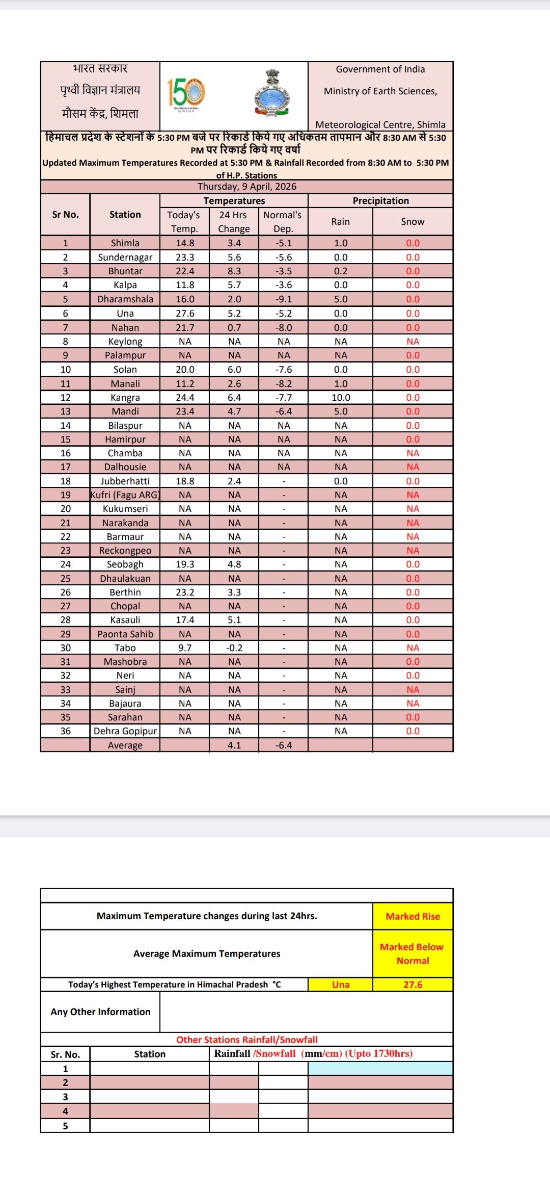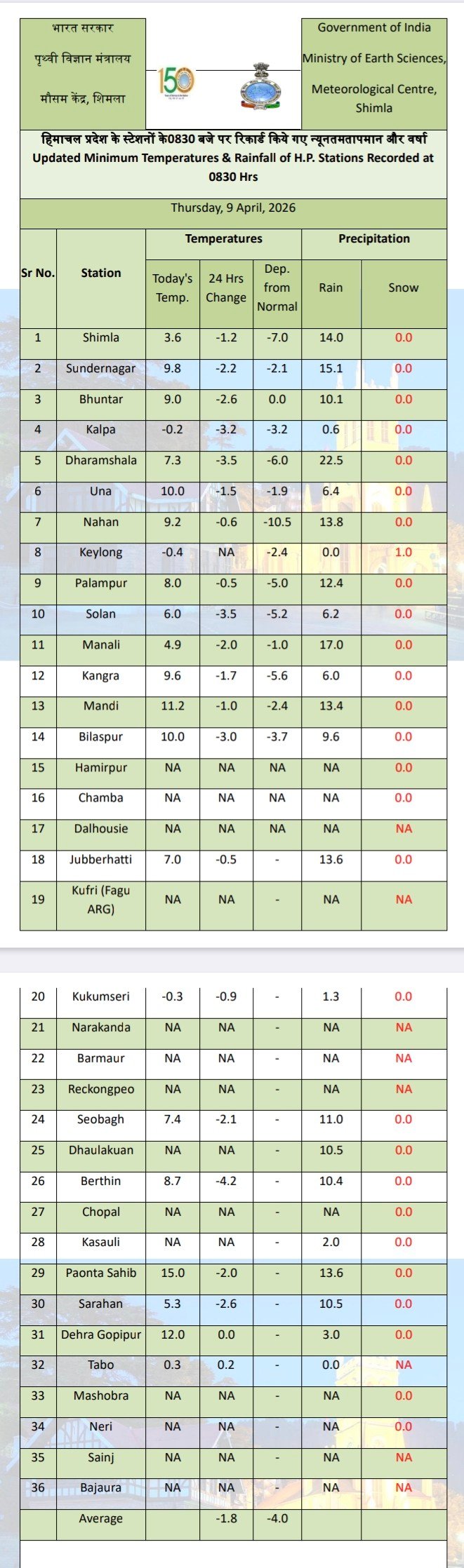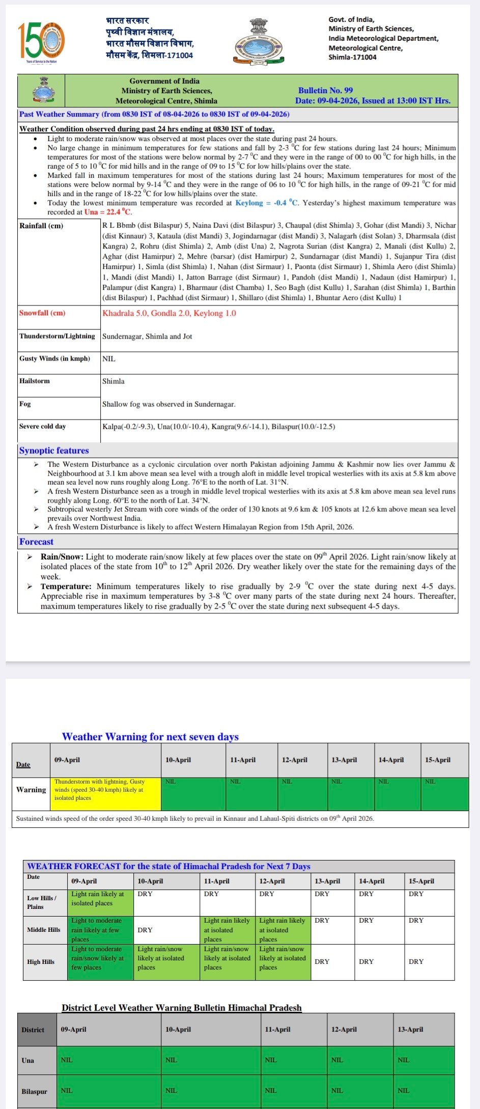 Himachal weather report