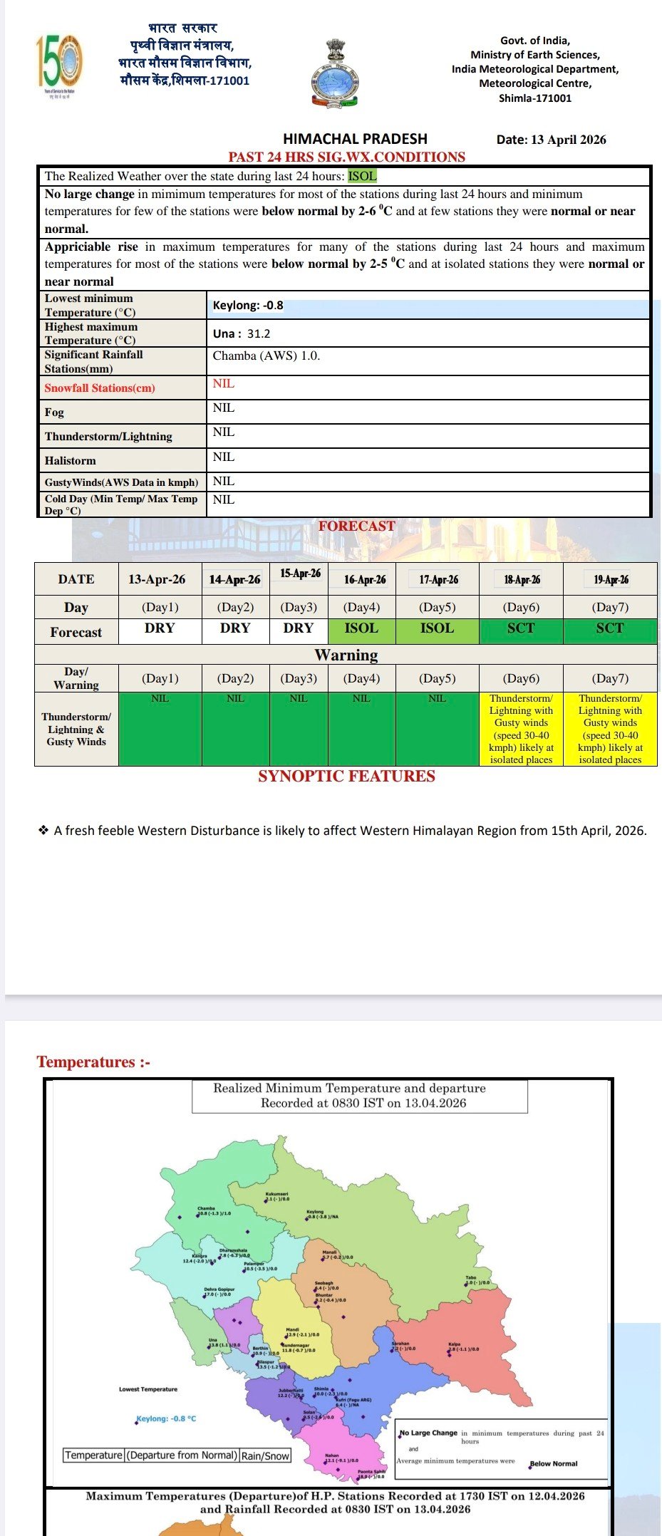 Maximum temperature 31.2 in Una