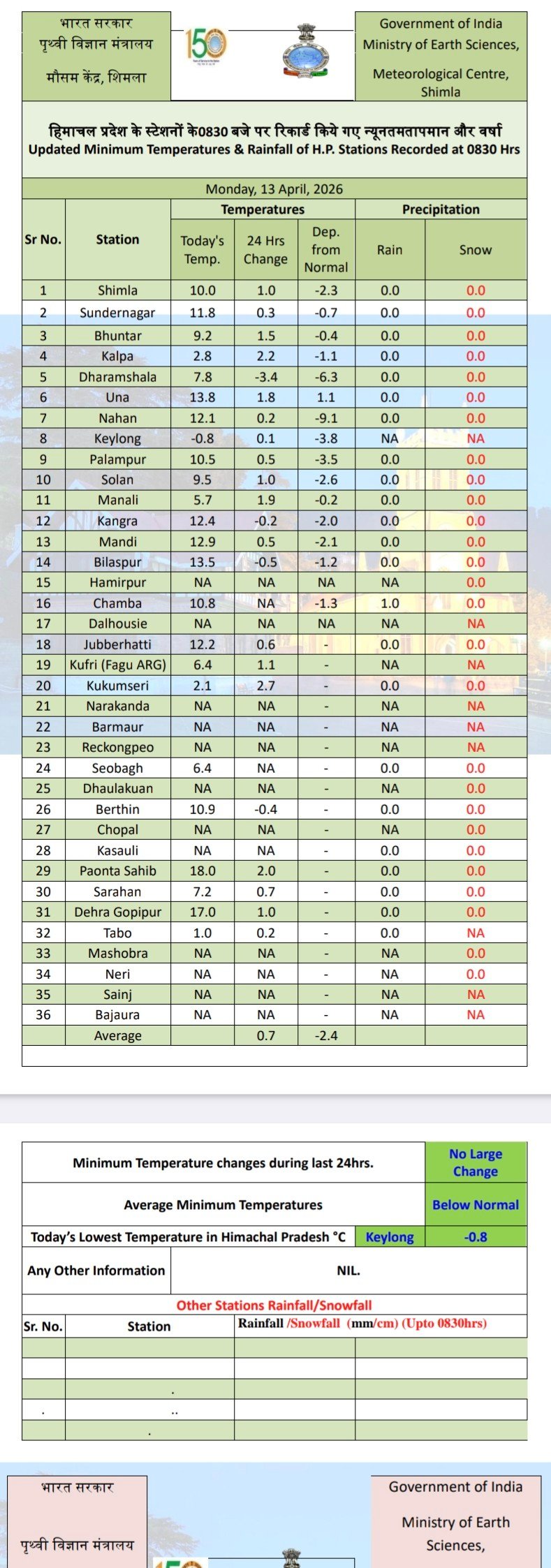 Minimum temperature report