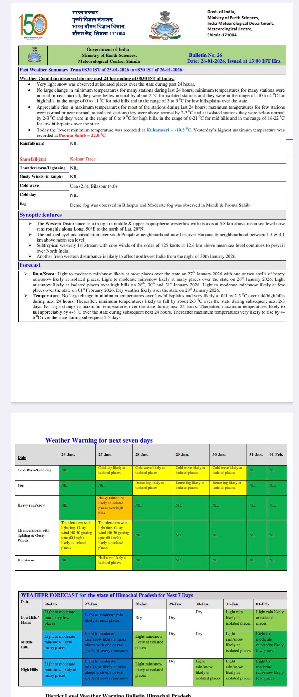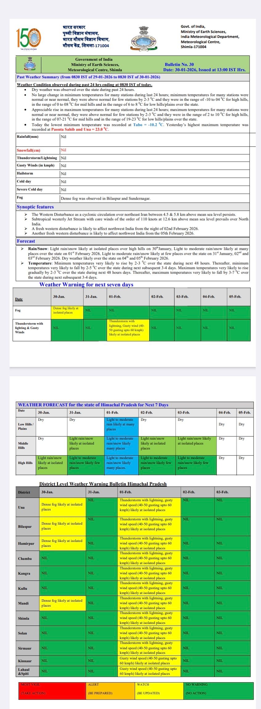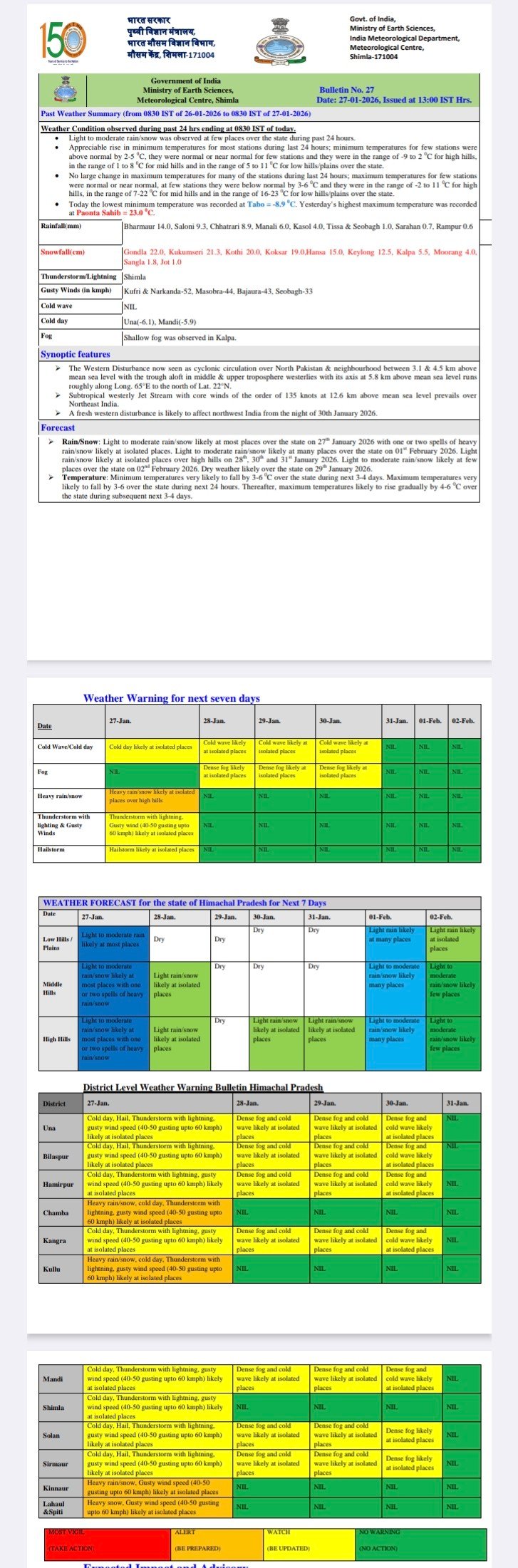 Himachal 24 hours weather report