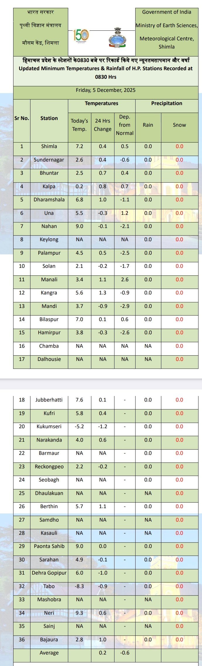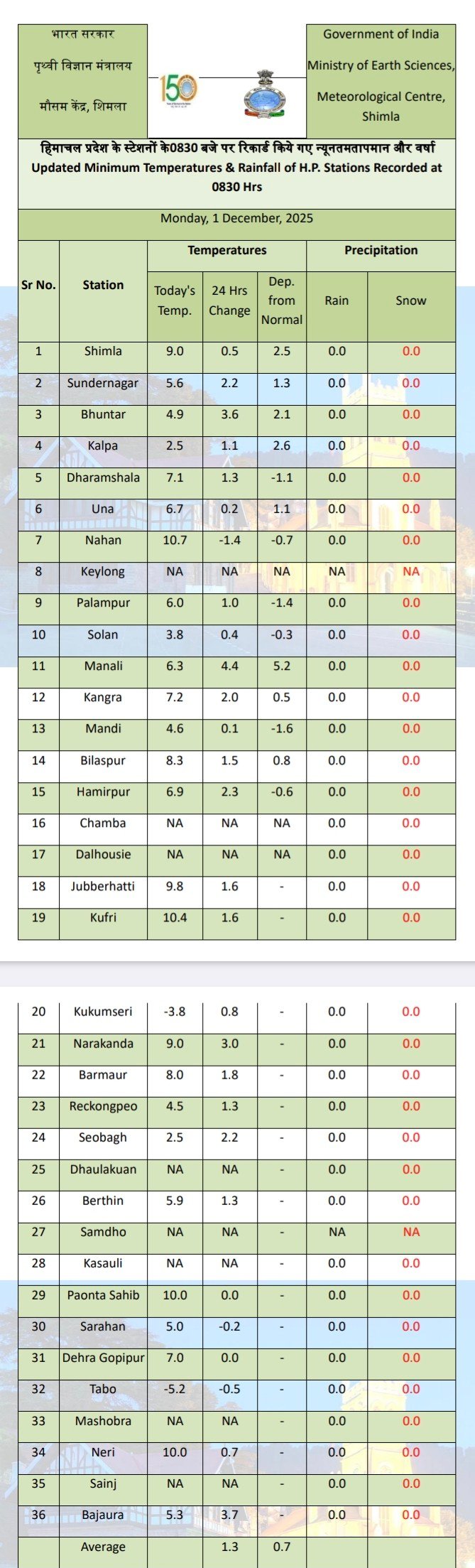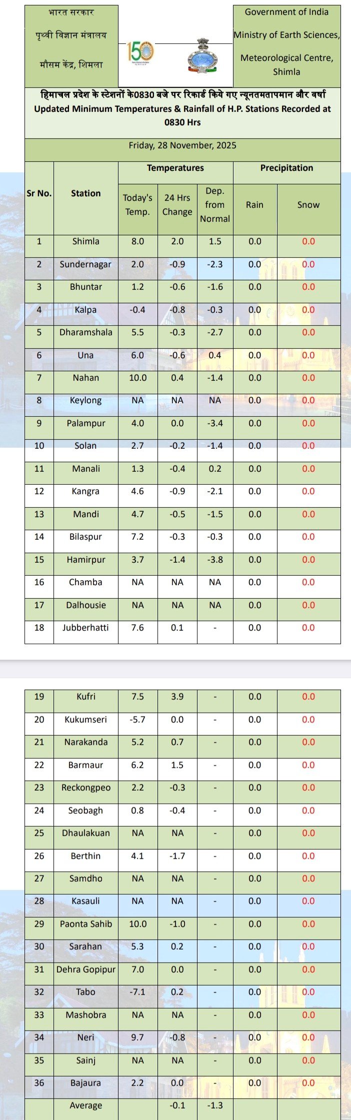24 Hours weather report