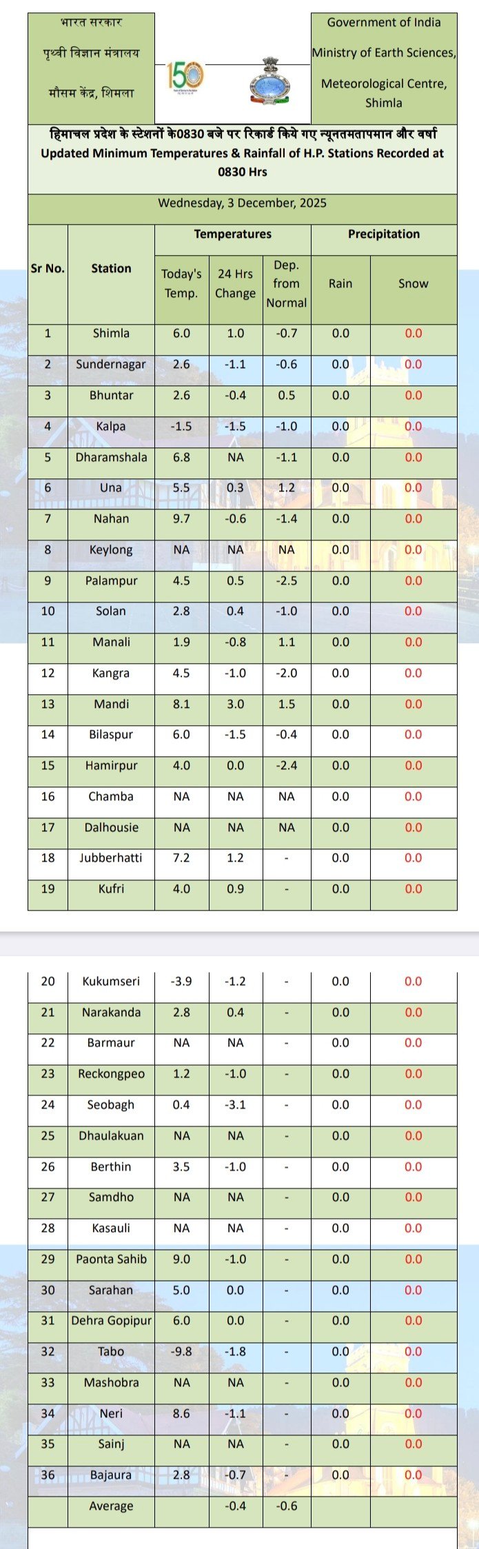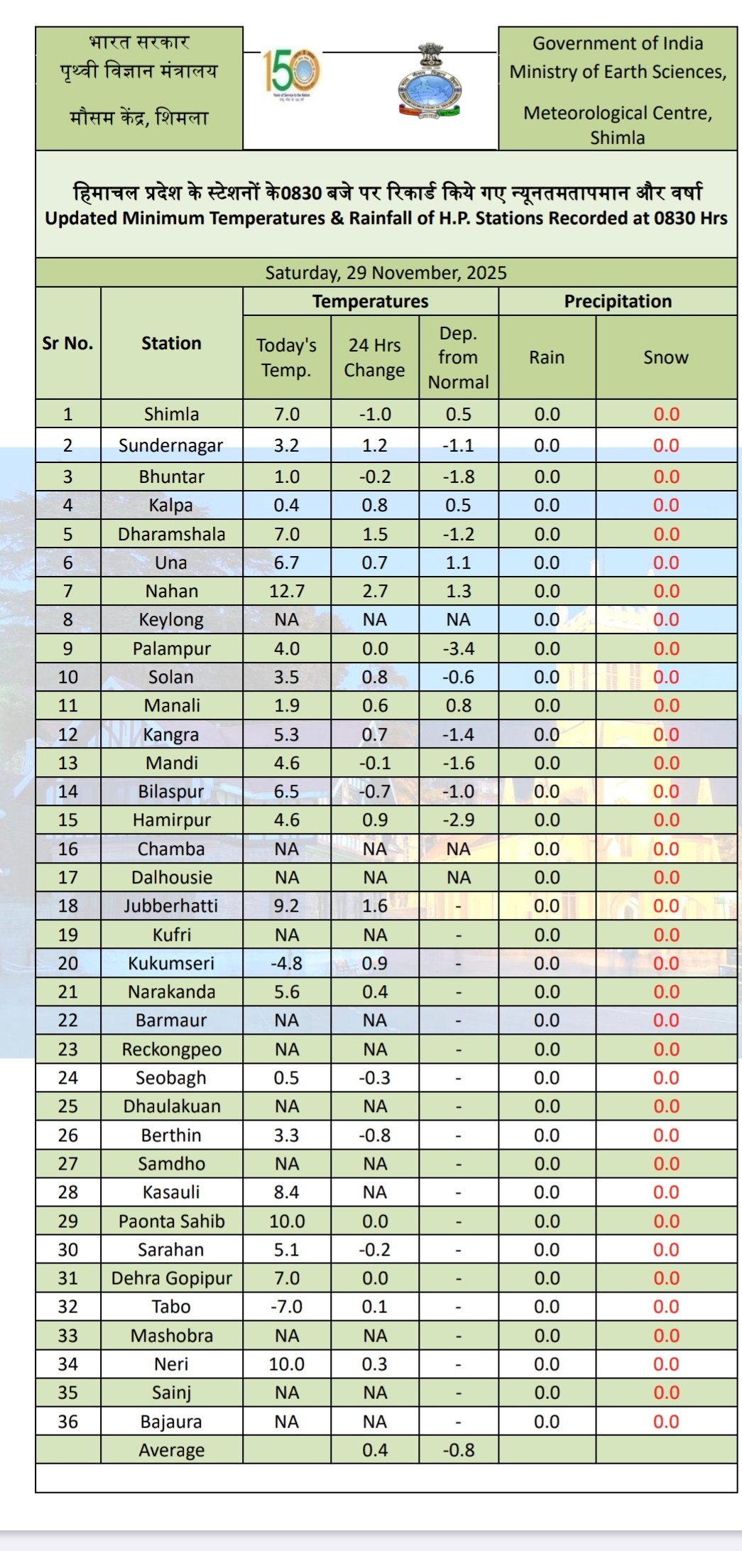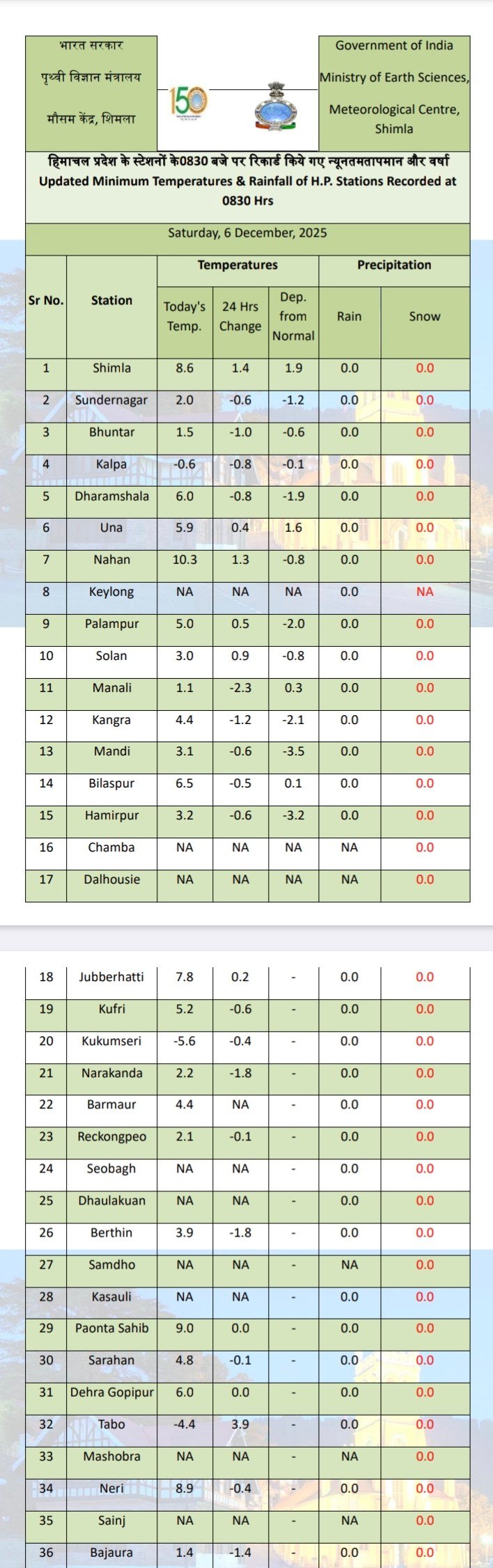 24 Hours weather report