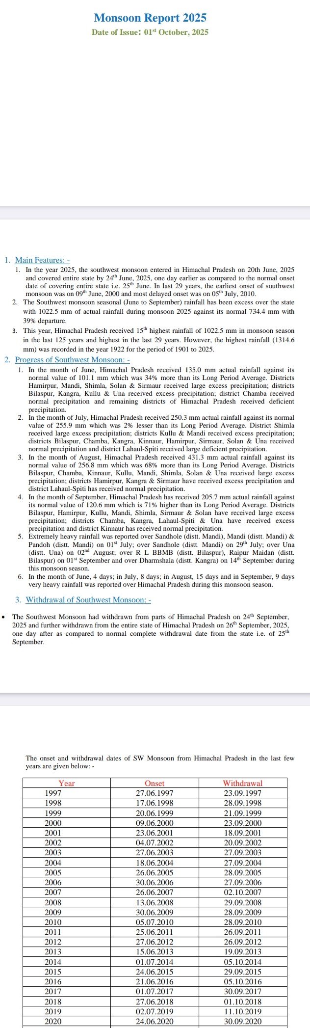 Monsoon report 2025