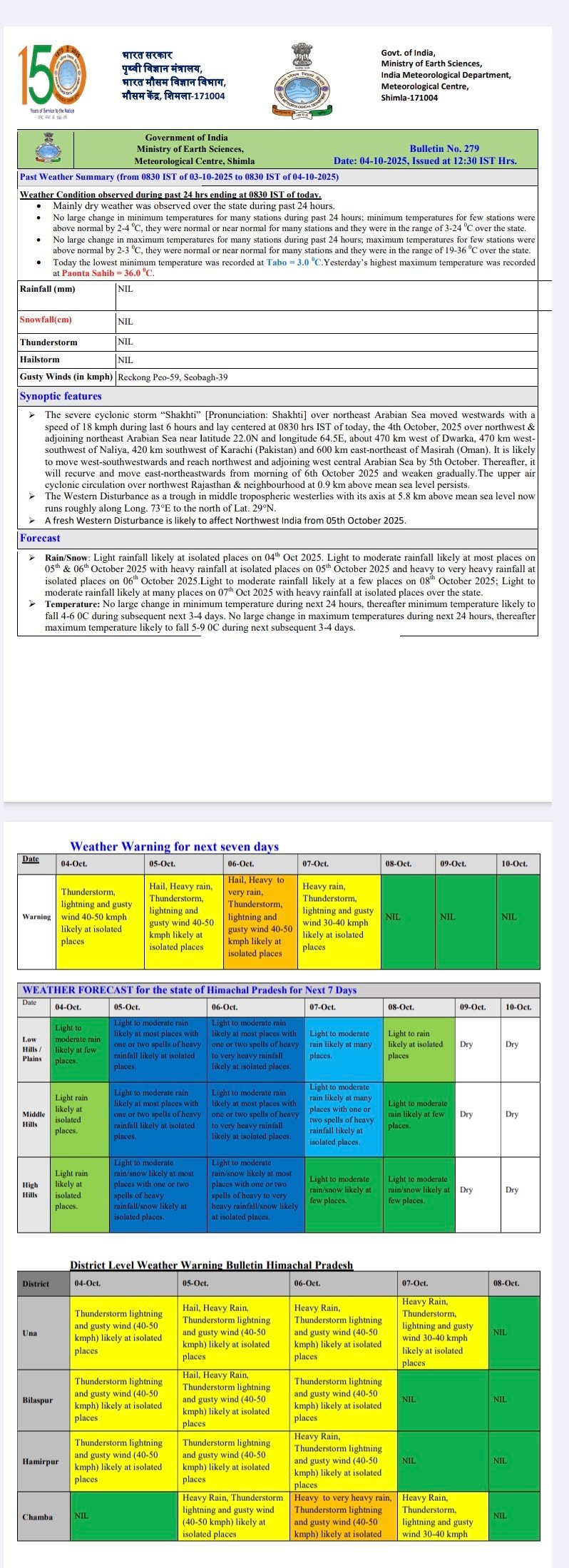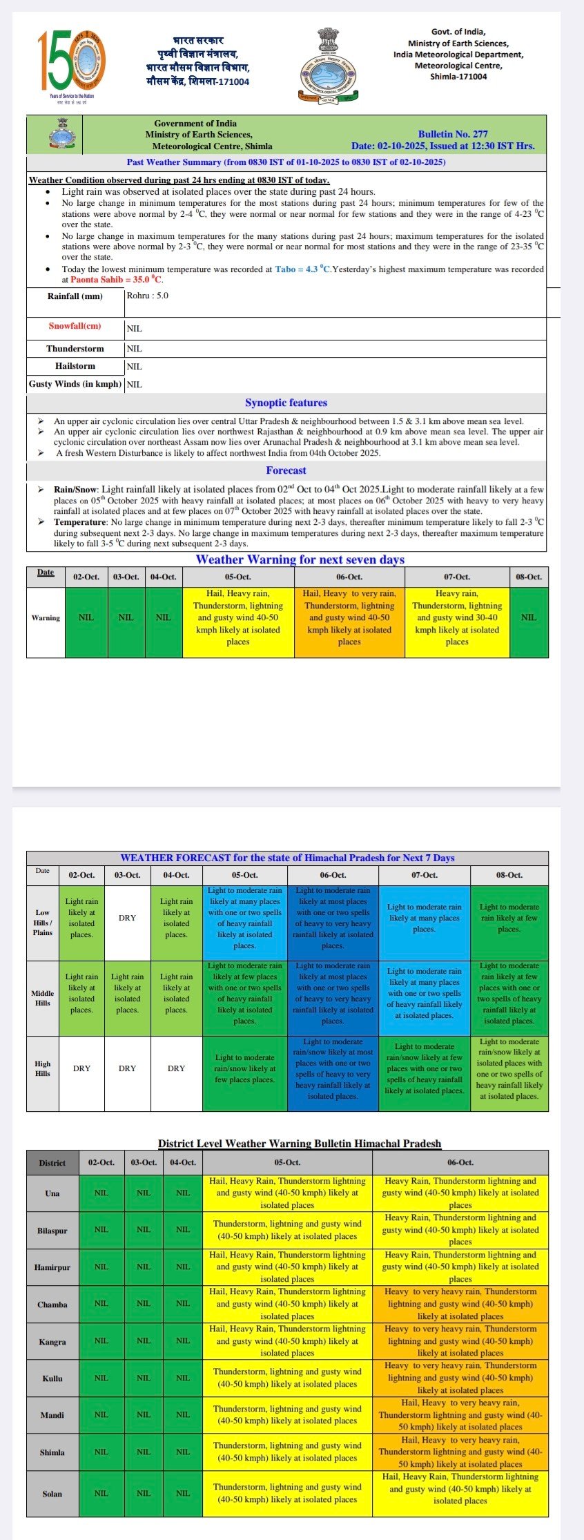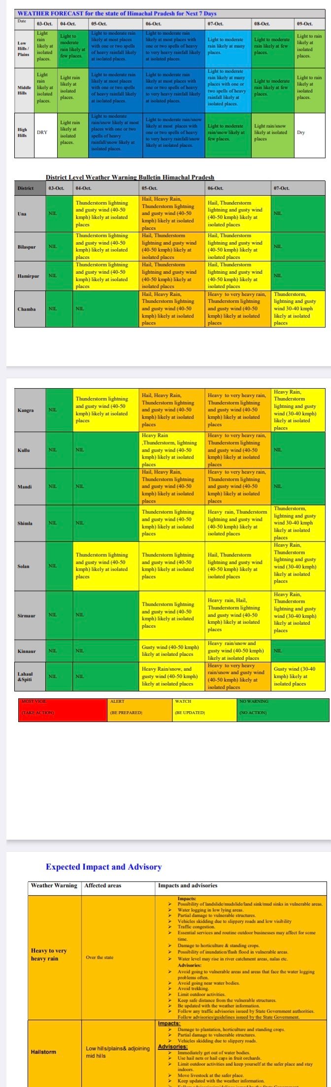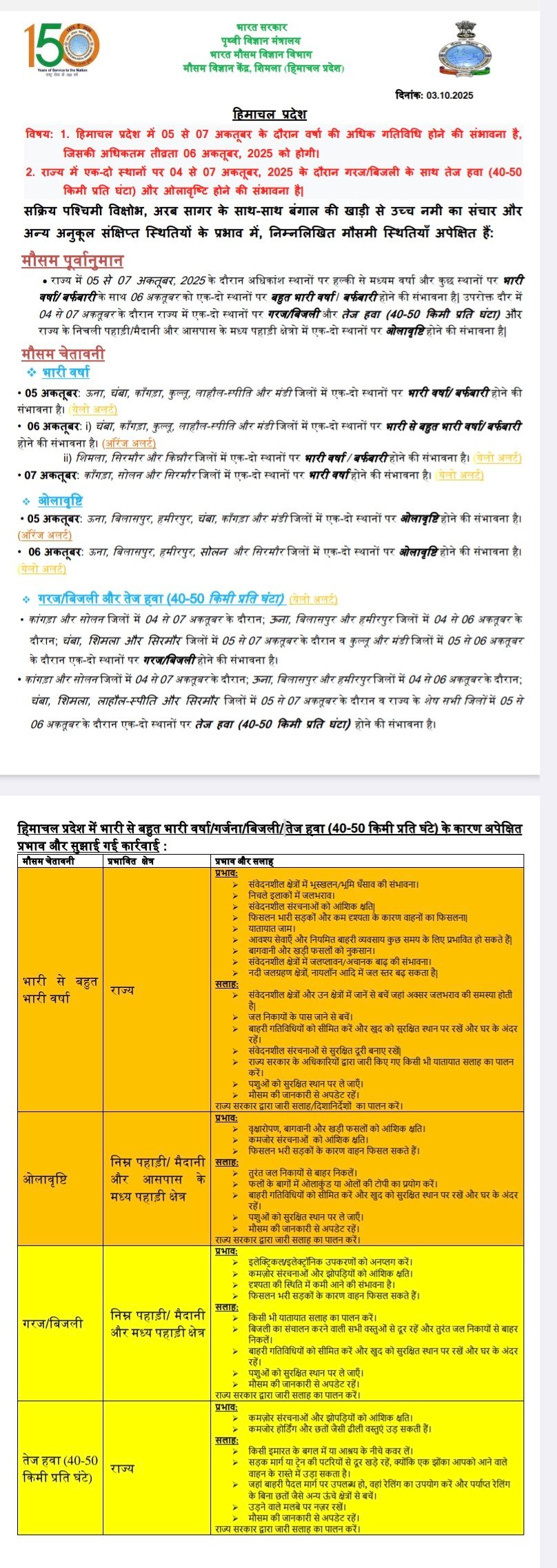 Very heavy rain alert in Himachal from 5 to 7 October