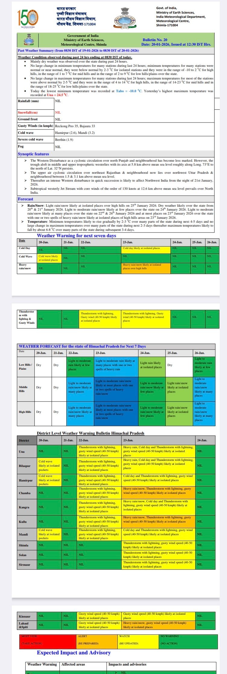 चंबा, कुल्लू और लाहुल-स्पीति सहित इन जिलों में भारी वर्षा की संभावना
