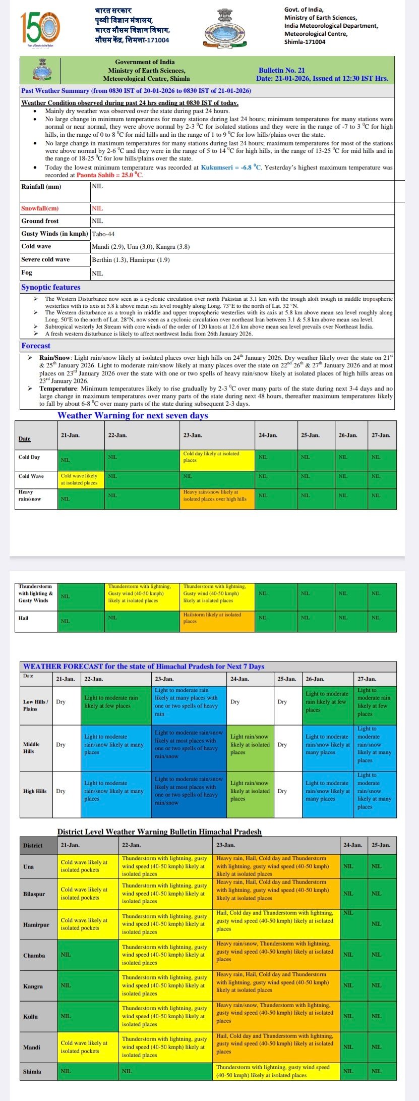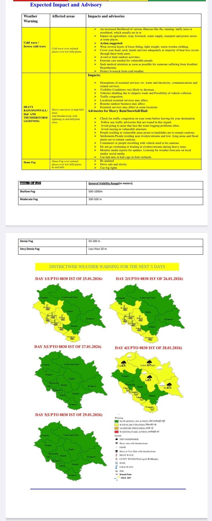 Weather advisory and forecast for five days