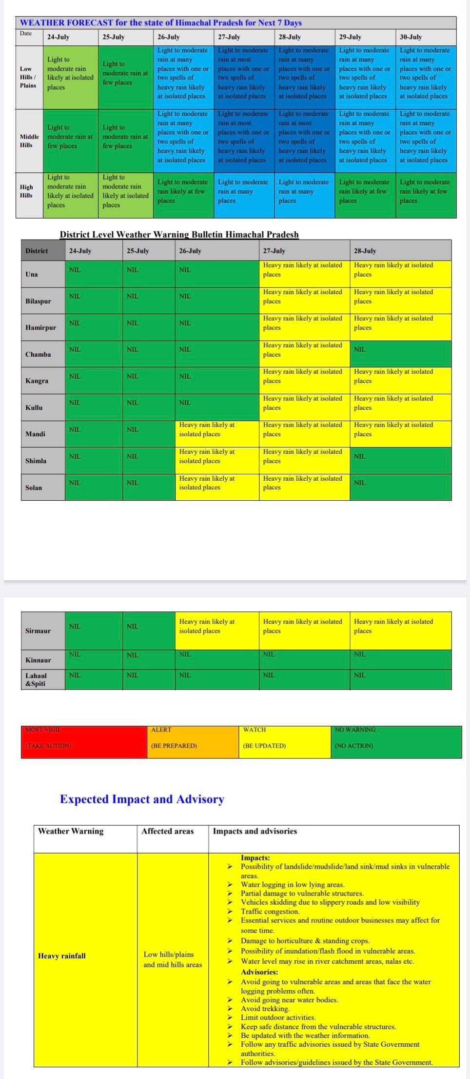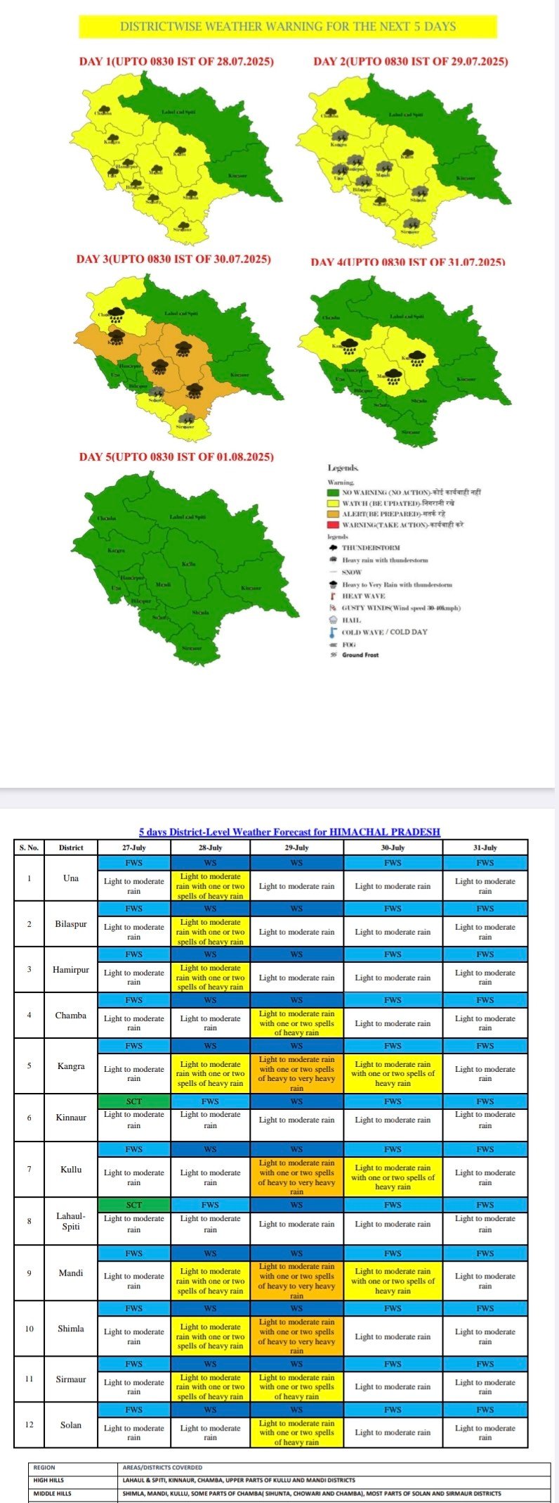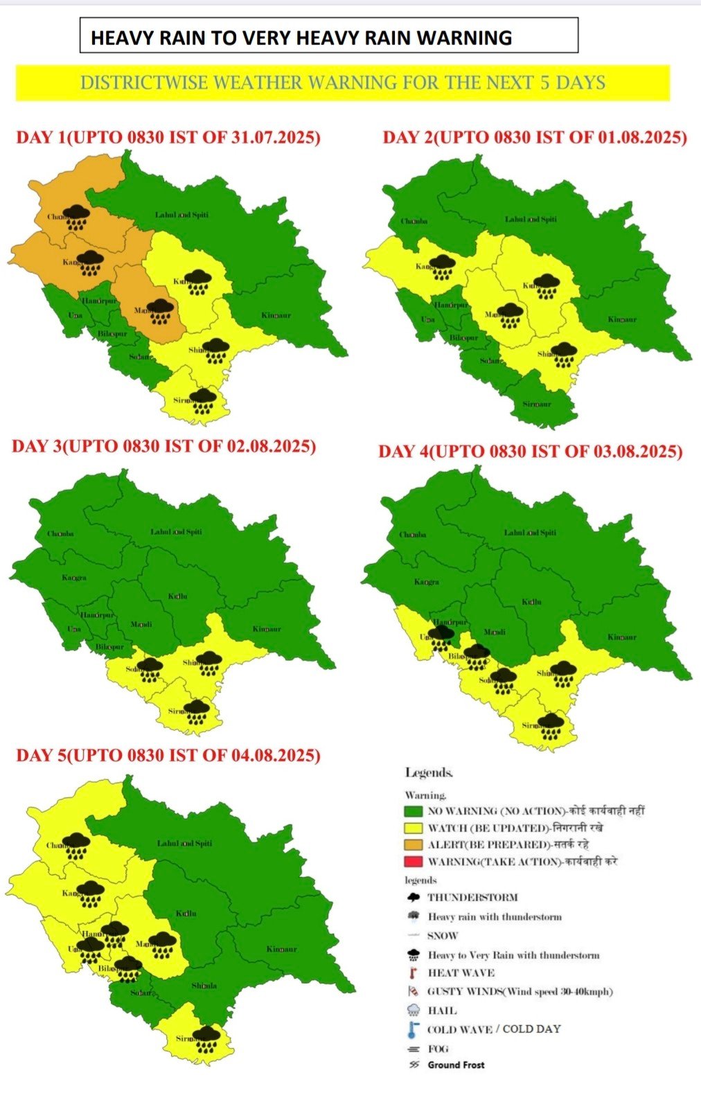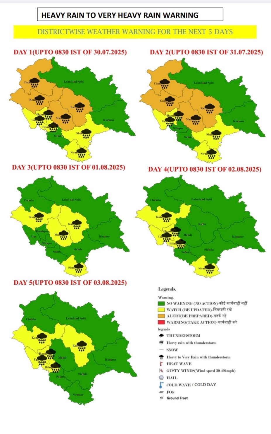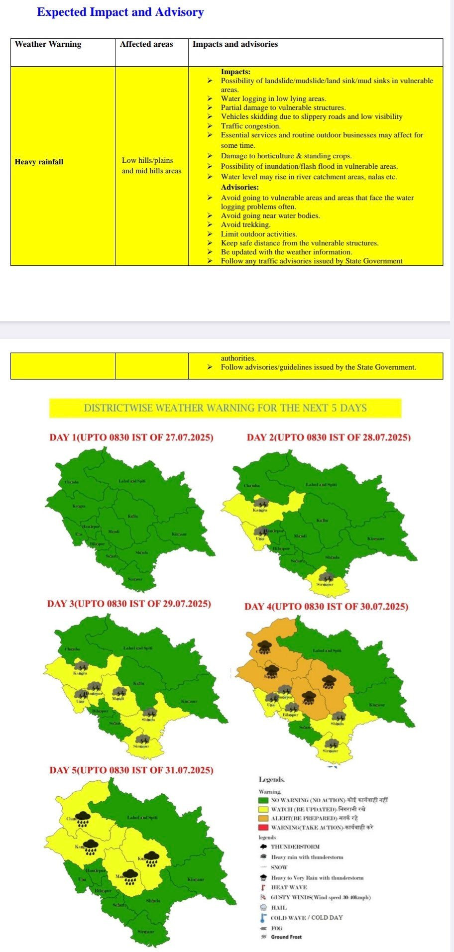Weather advisory, five days alert