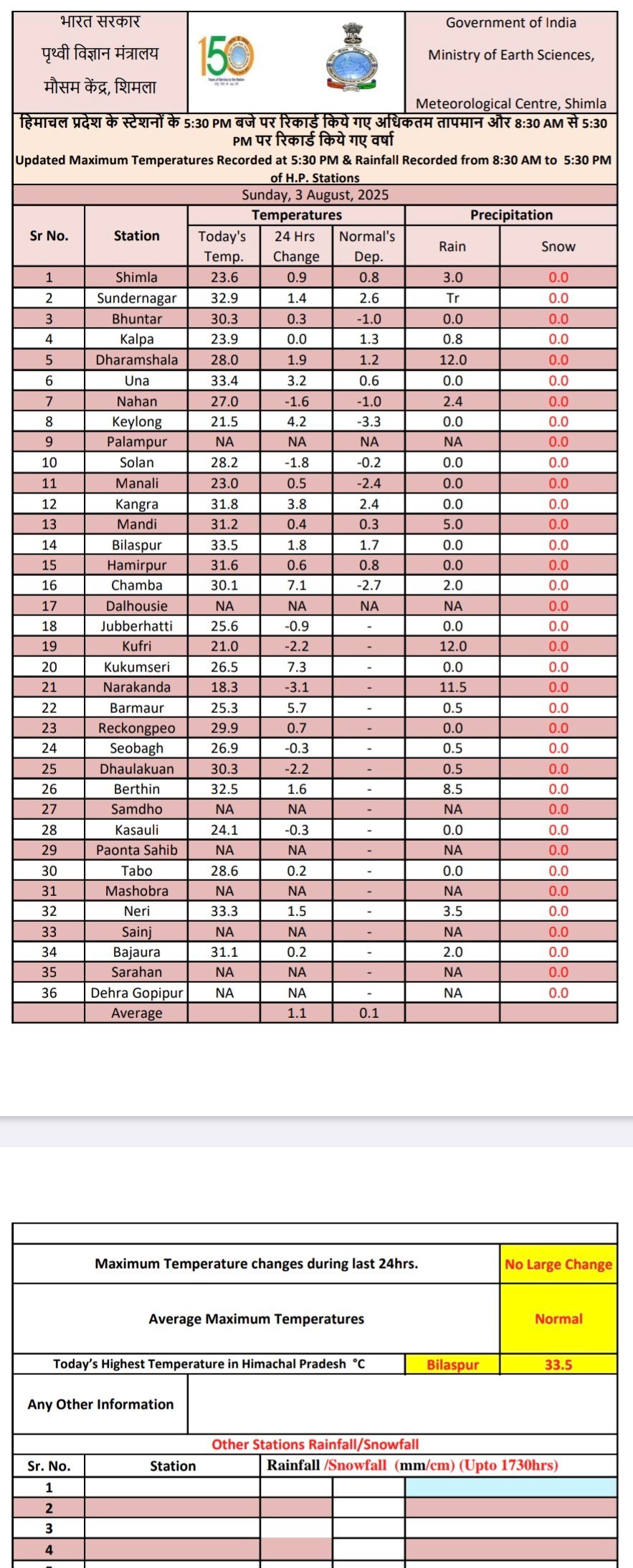 Five days weather alert