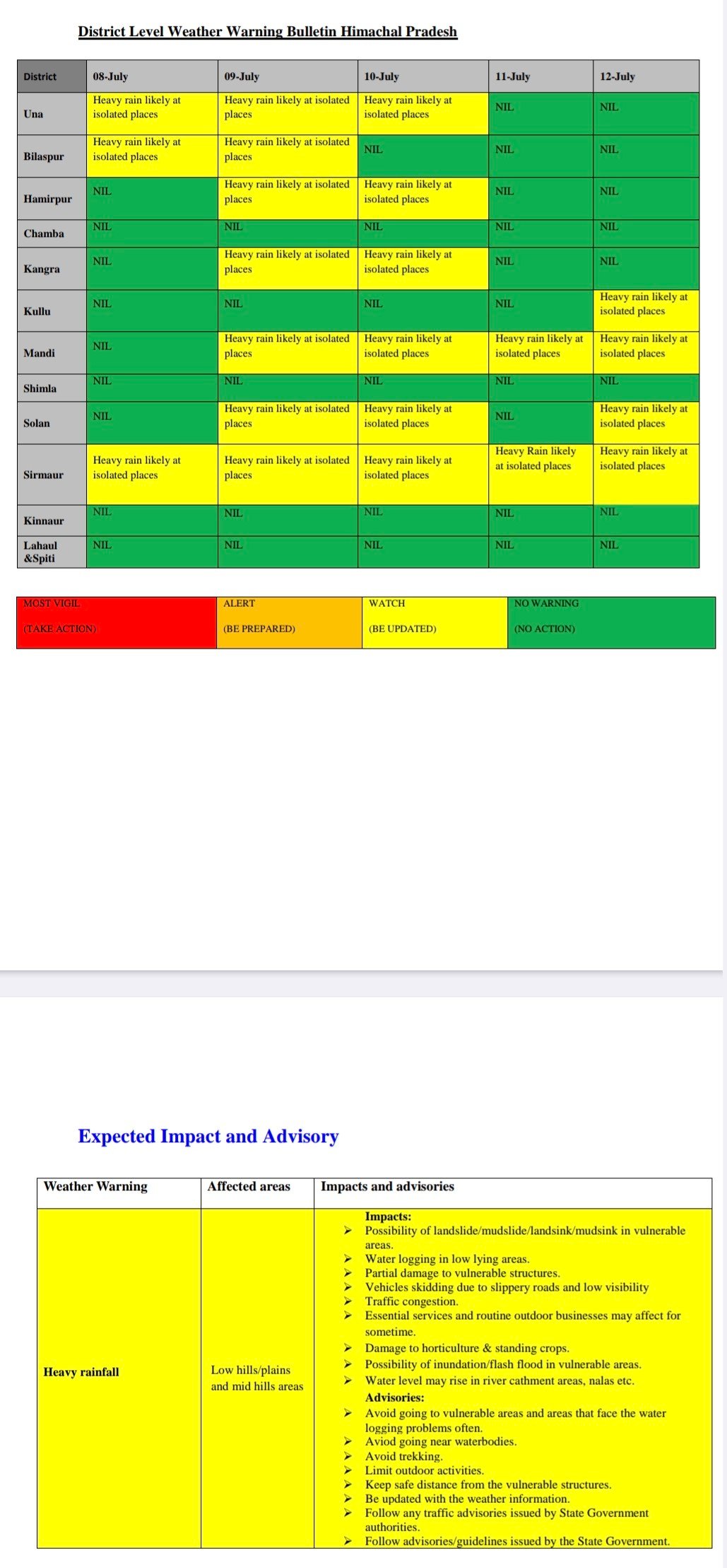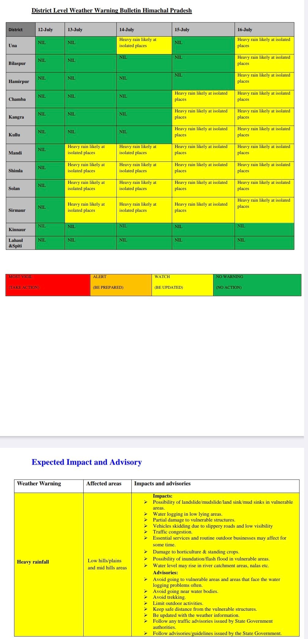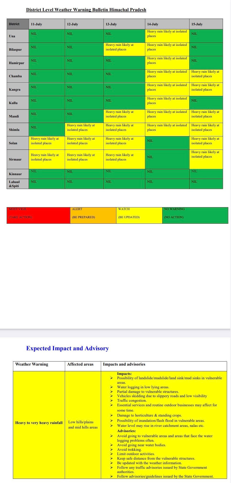 District wise weather alert
