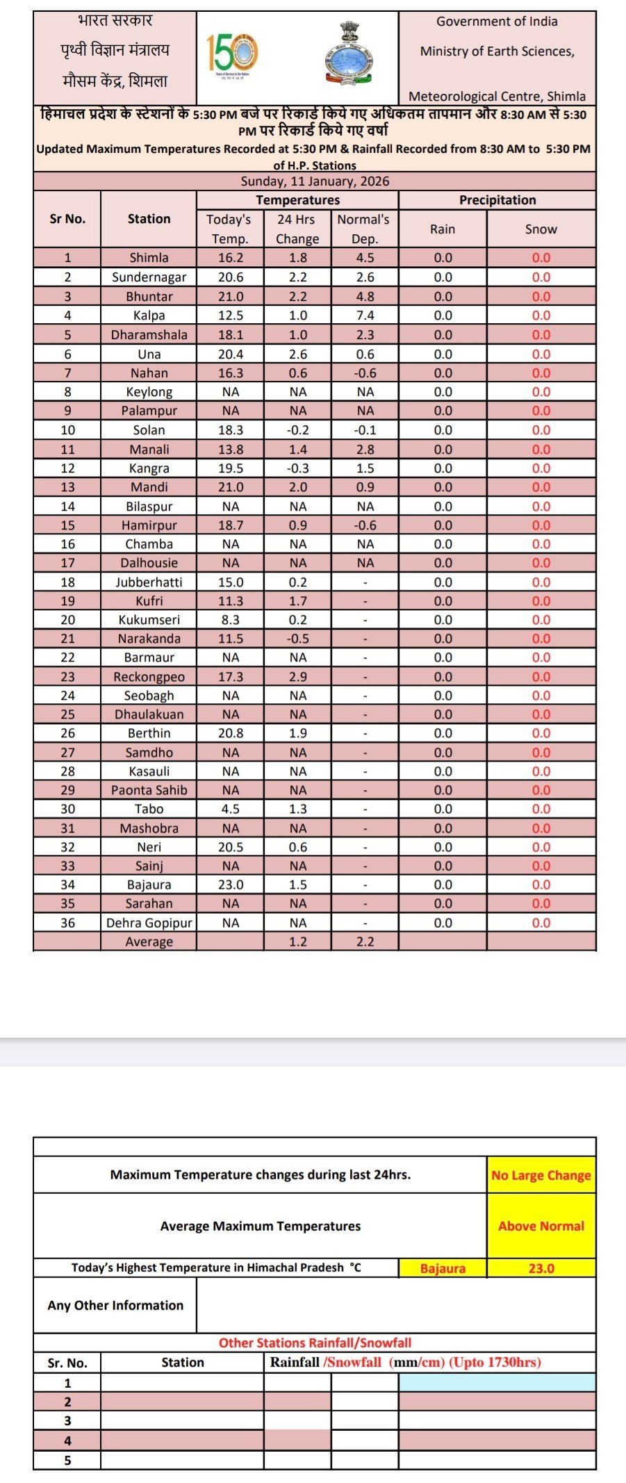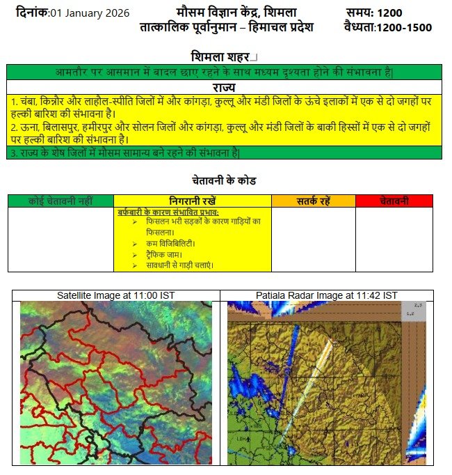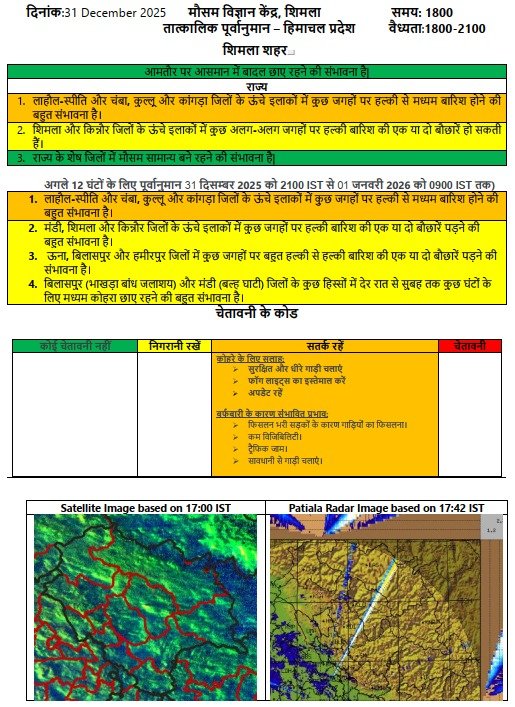 हिमाचल प्रदेश के इन जिलों में आज वर्षा और हिमपात की संभावना