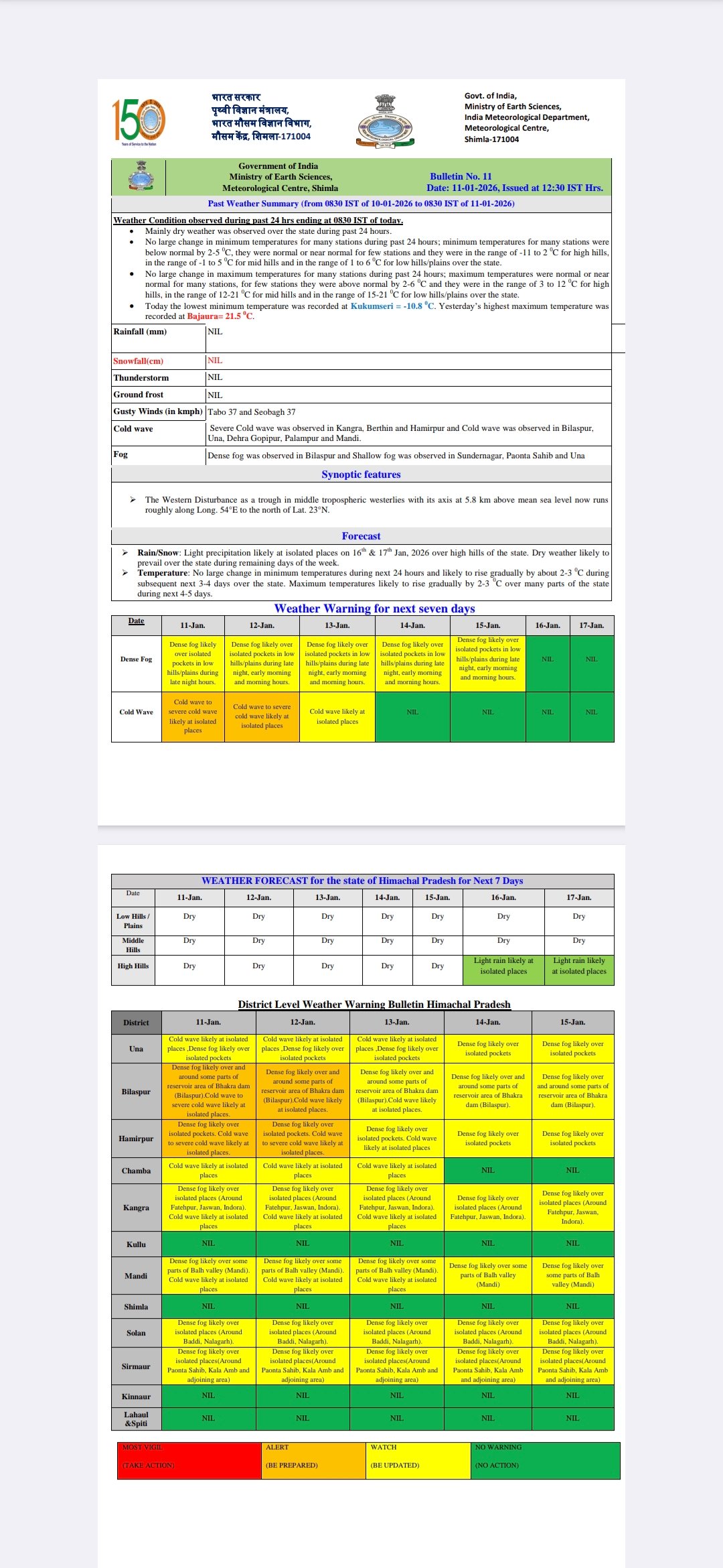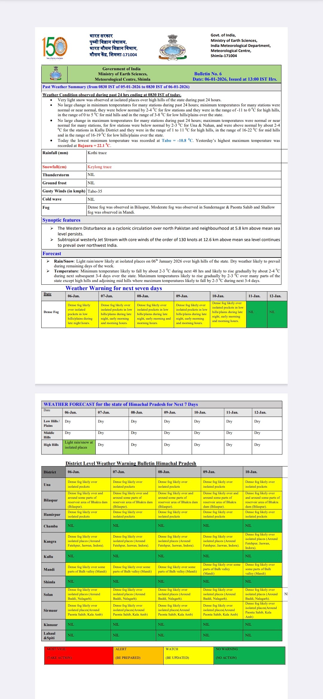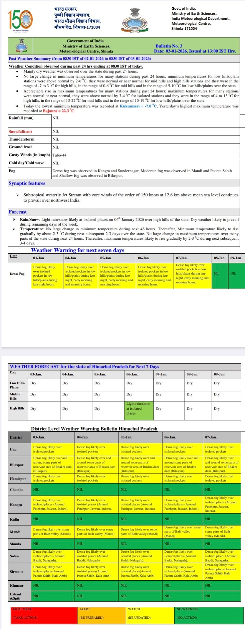 Dense fog alert in Himachal