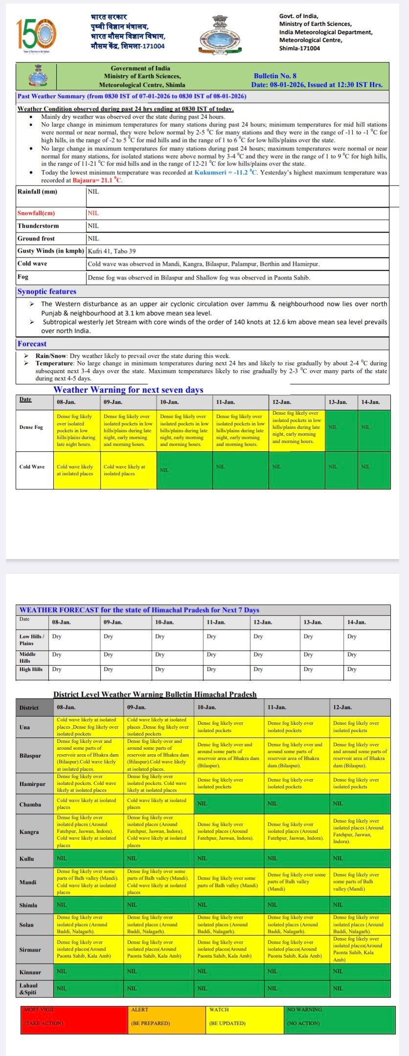 Yellow dense fog alert for seven days in Himachal