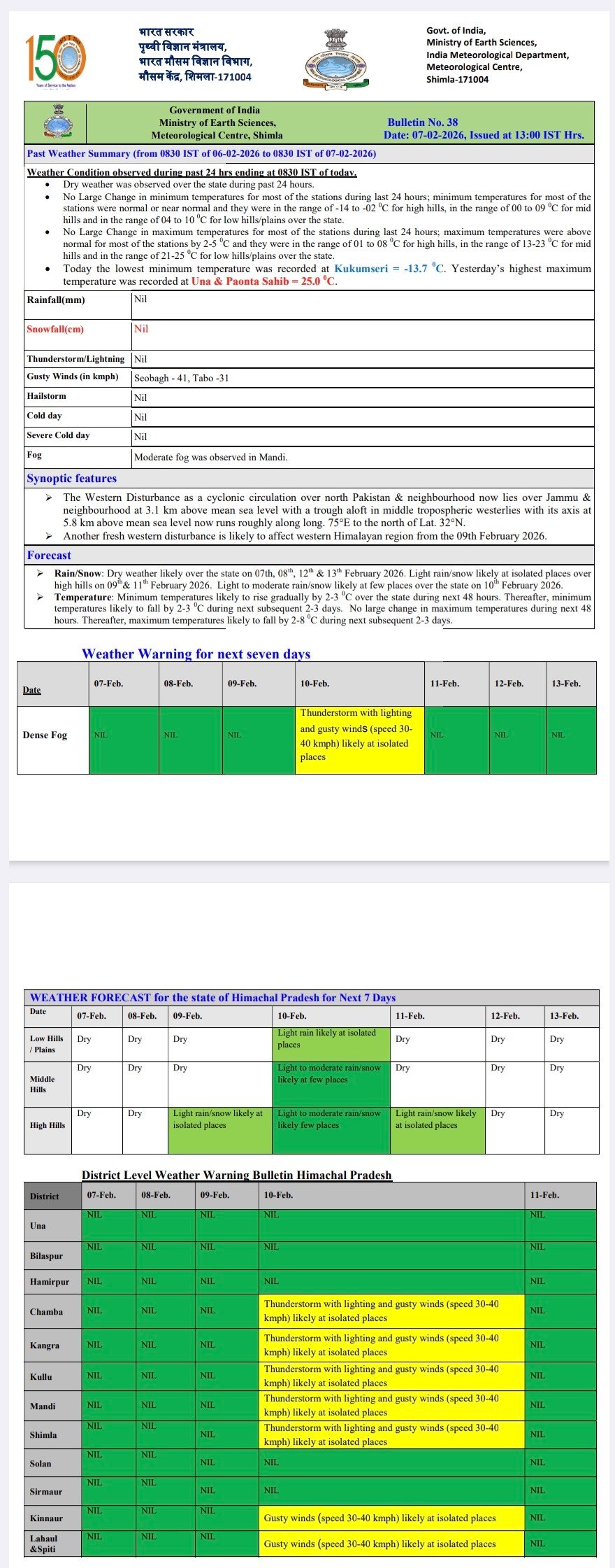Himachal weather report