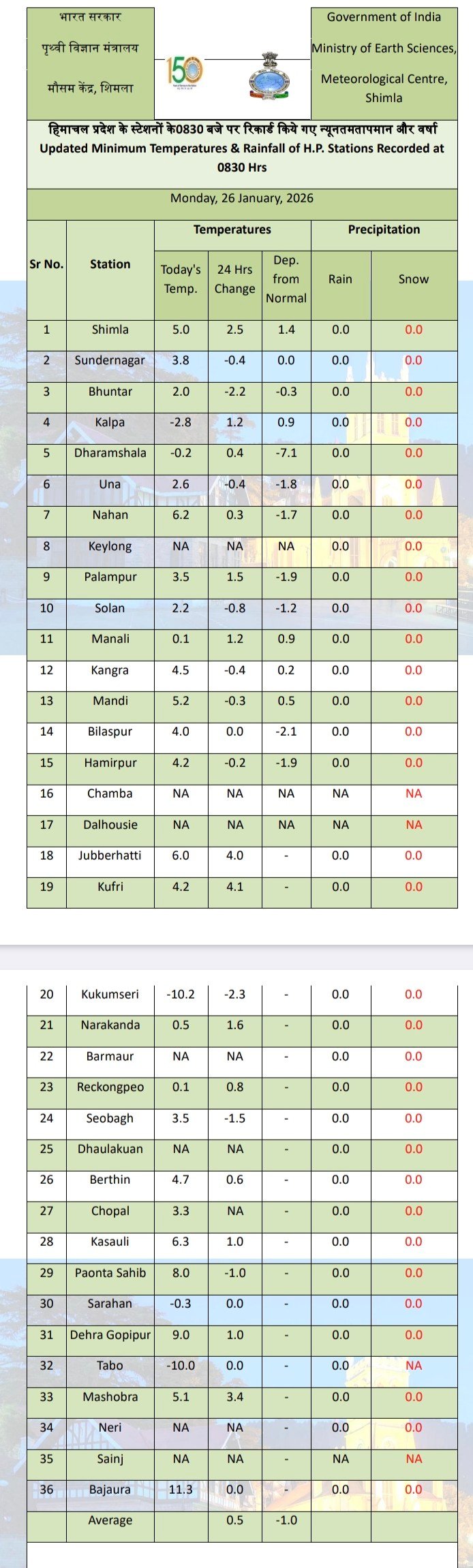 Minimum temperature below normal in Himachal