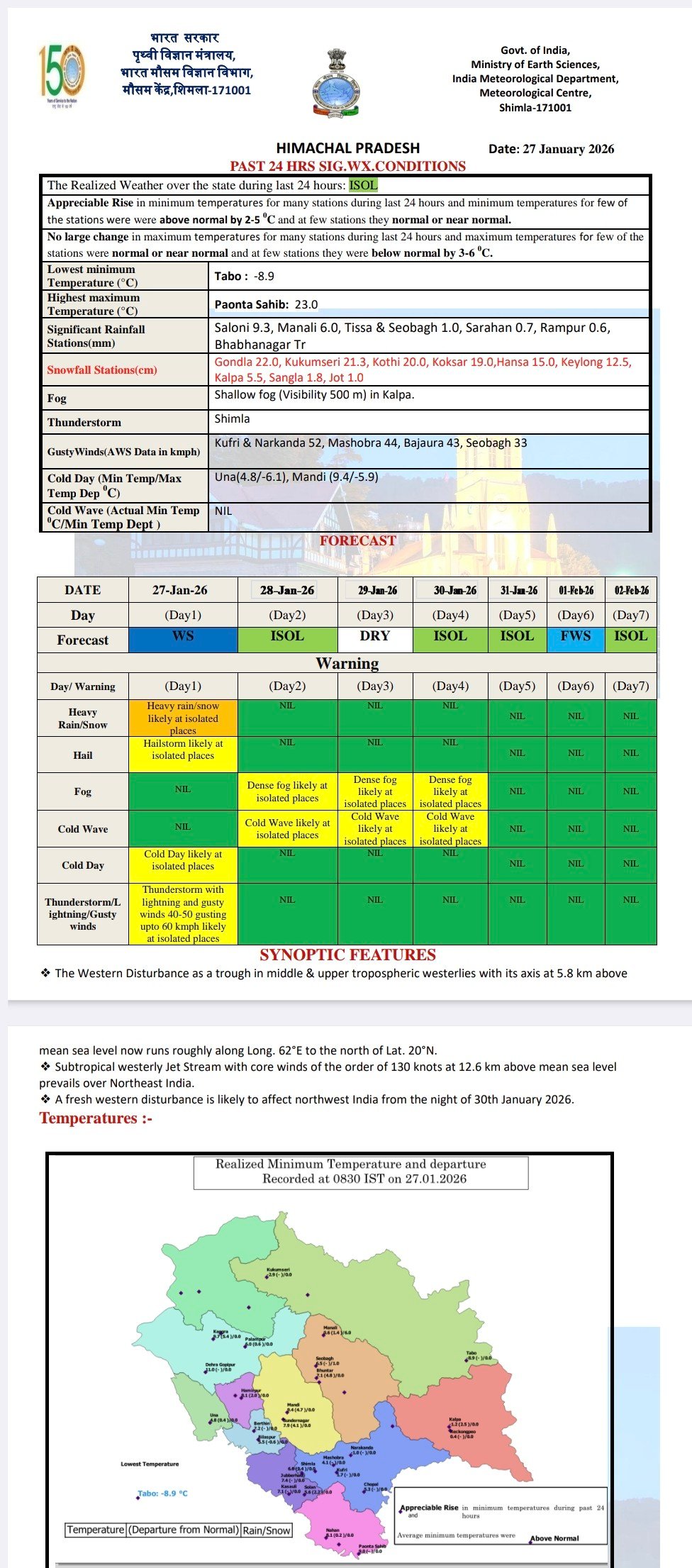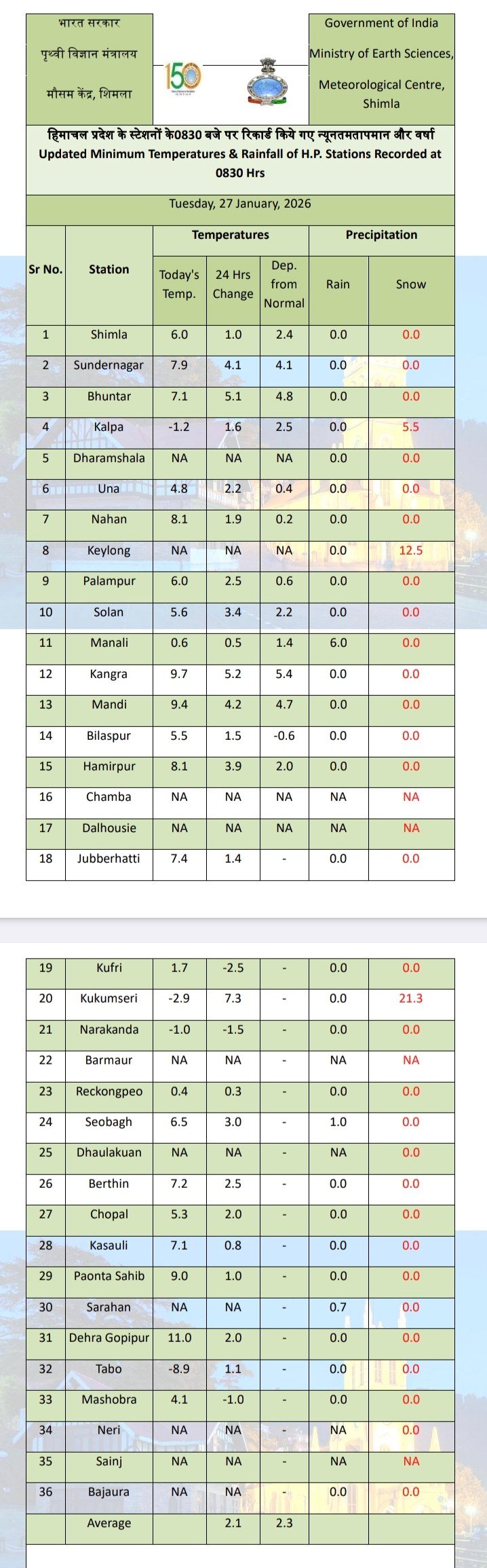 In spite of snowfall, minimum temperature increased in Himachal