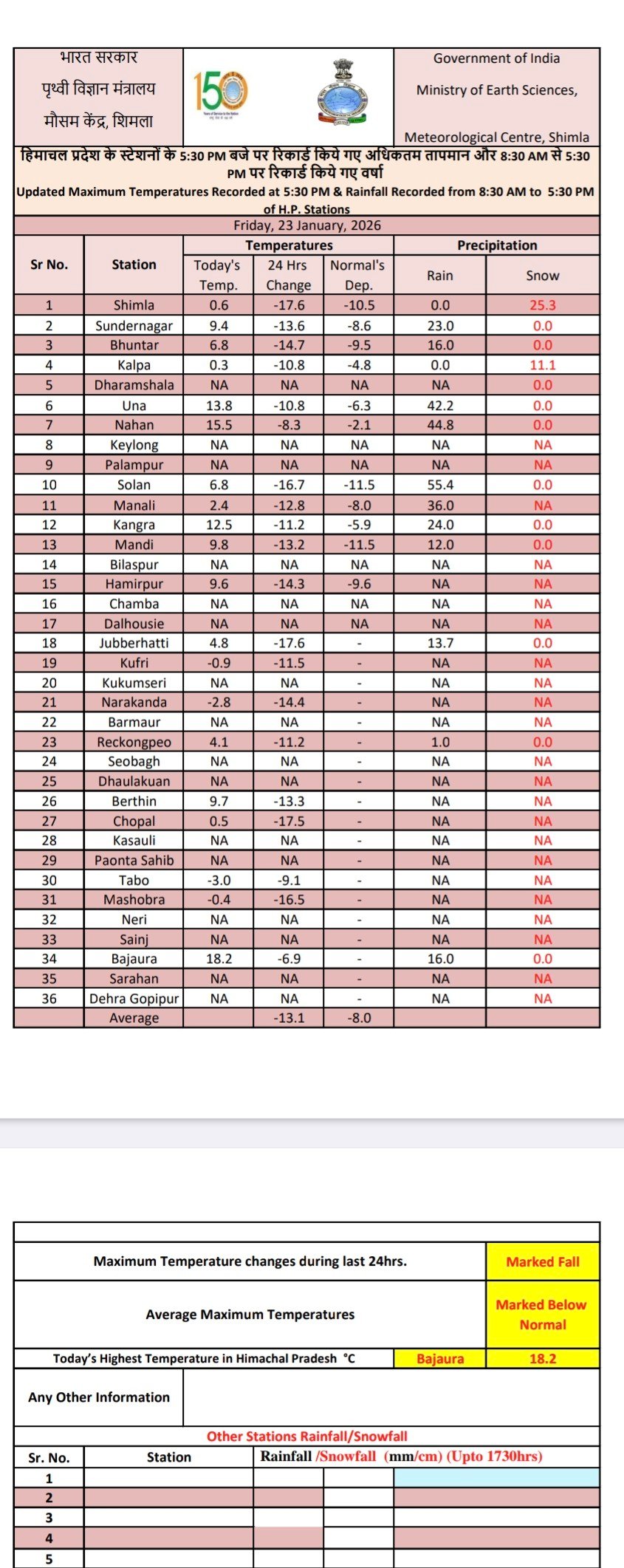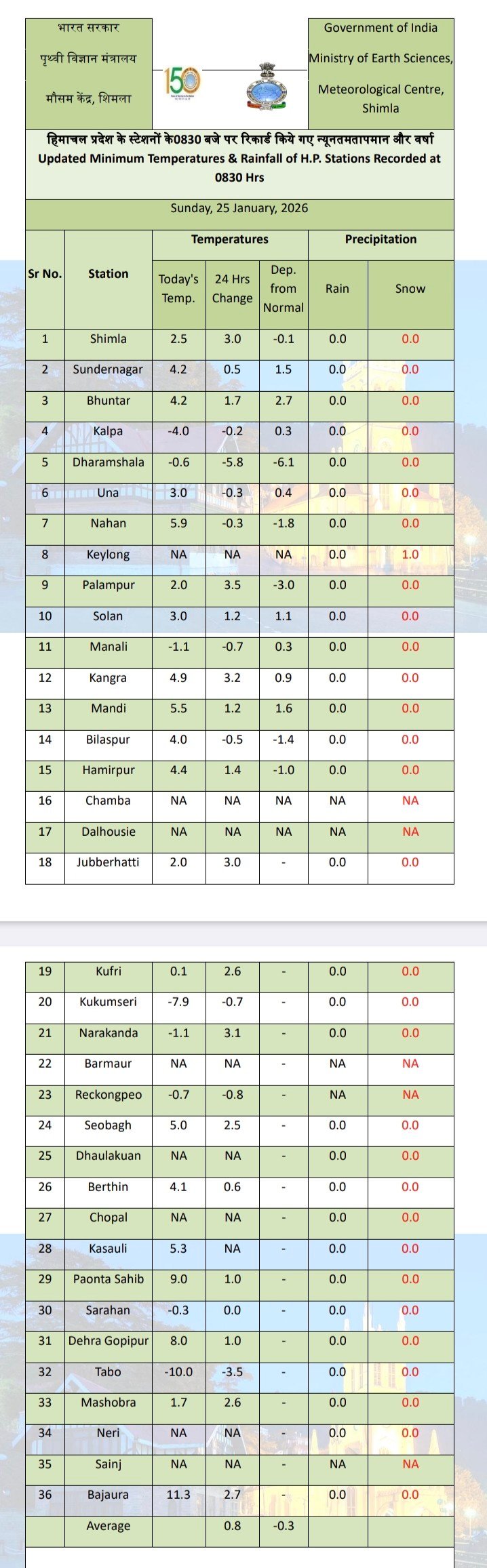 Minimum temperature increased but below normal in Himachal