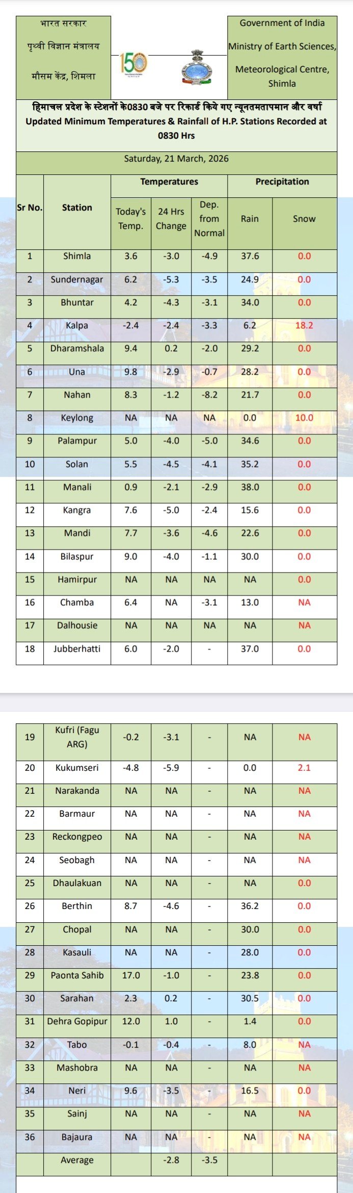 Home » देवभूमि हिमाचल » Minimum temperature below normal 3.5 degrees