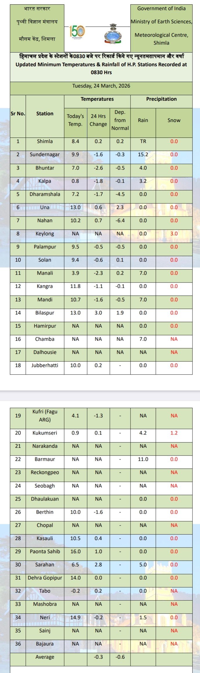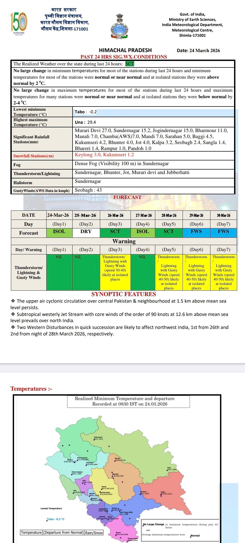 Rainfall, snowfall, hailstorm, winds and fog figures of Himachal