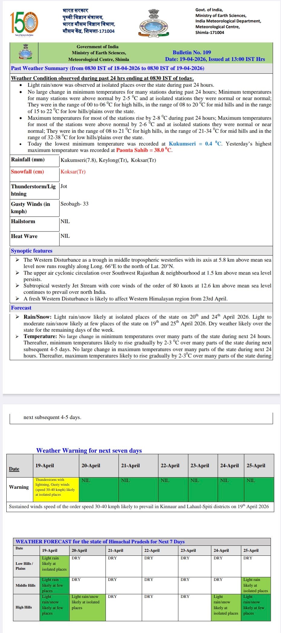 Home » देवभूमि हिमाचल » Rainfall at two places