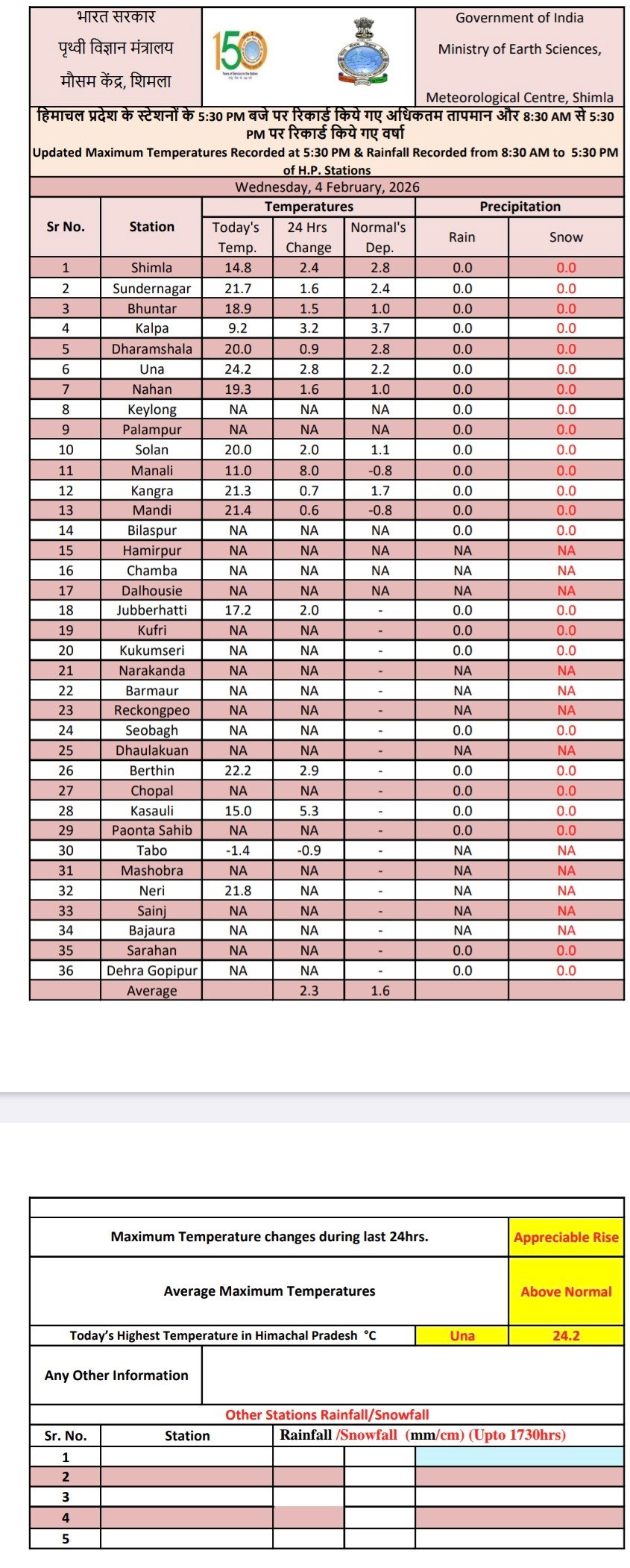 Home » देवभूमि हिमाचल » Weather forecast for one week